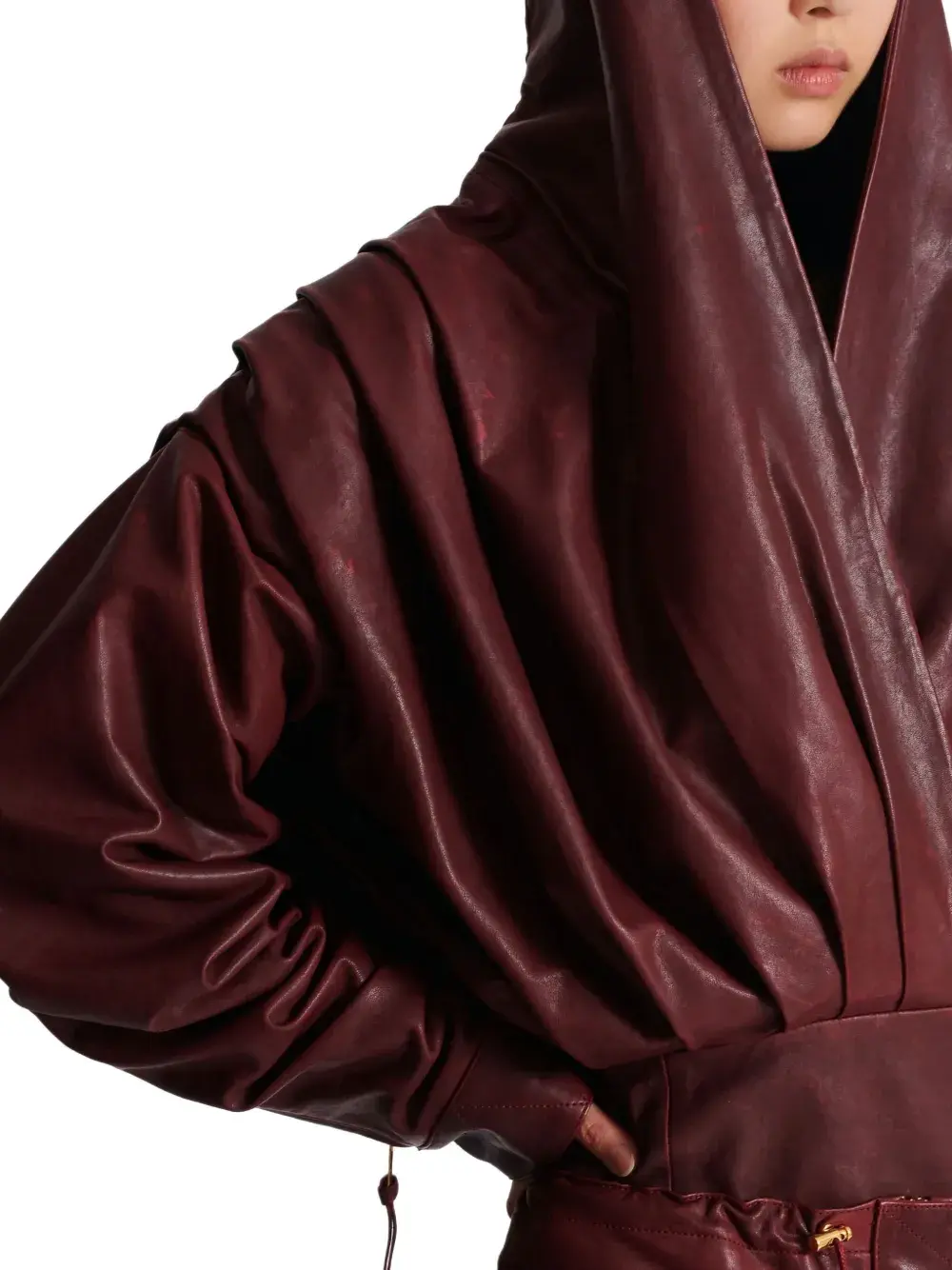 Кожаное платье мини с капюшоном BALMAIN, красный