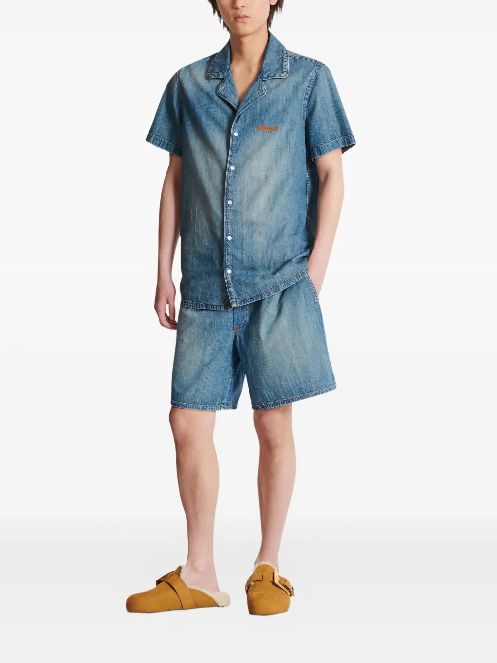 Пижамная рубашка с короткими рукавами BALMAIN, синий