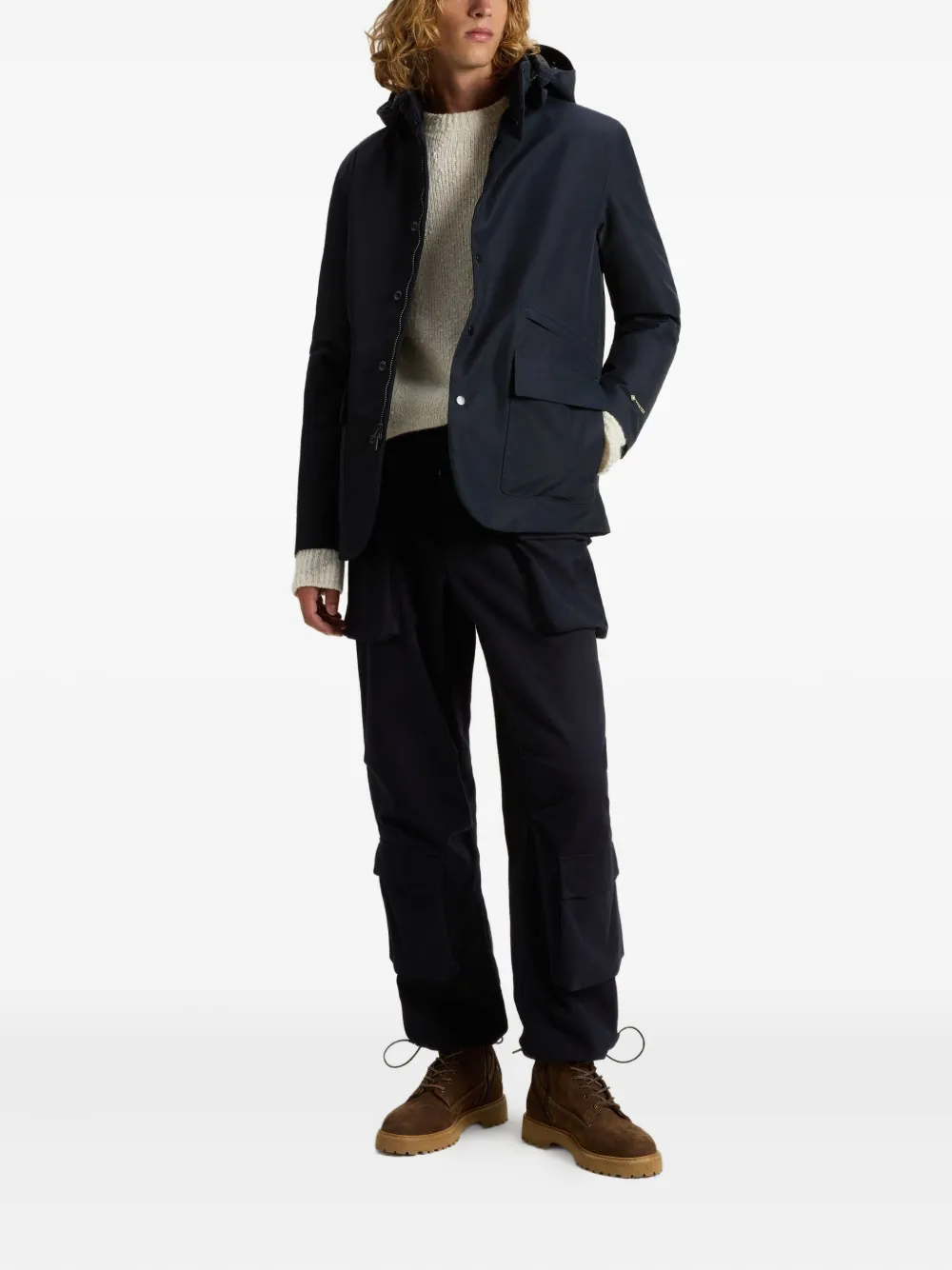 Куртка на пуговицах с капюшоном WOOLRICH, синий