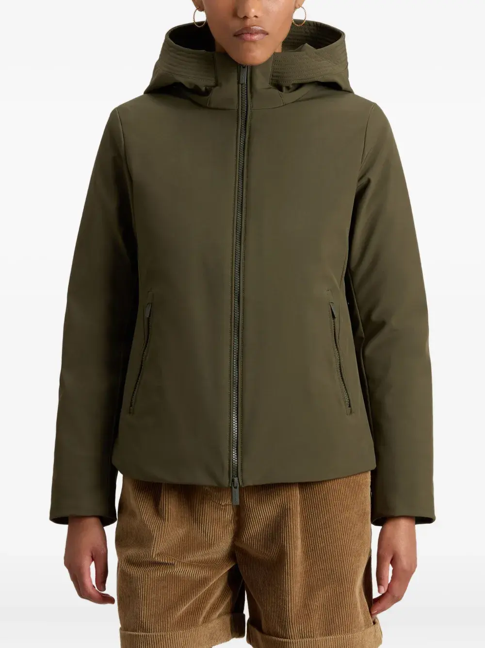 Пальто на молнии с капюшоном WOOLRICH, зеленый
