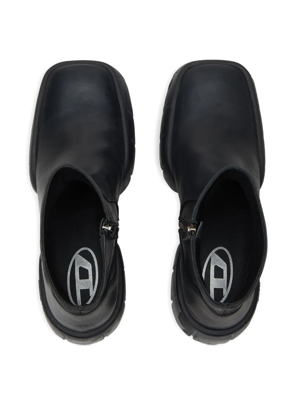 Черный кожа застежка-молния рельефная подошва высота по щиколотку квадратный носок
