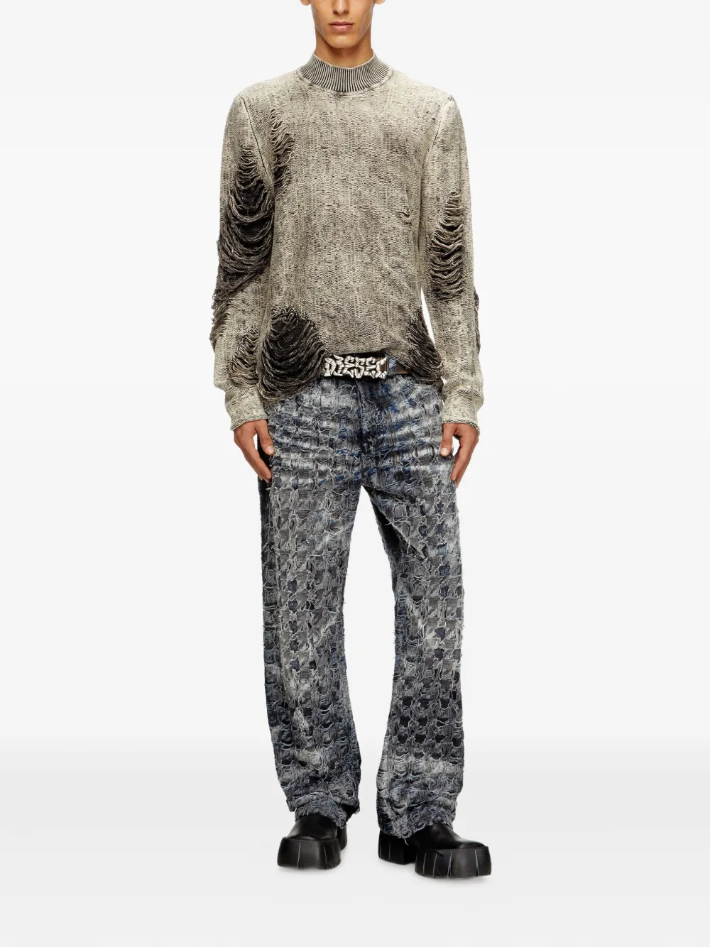 Свитер K-Fjordi с бахромой DIESEL, серый