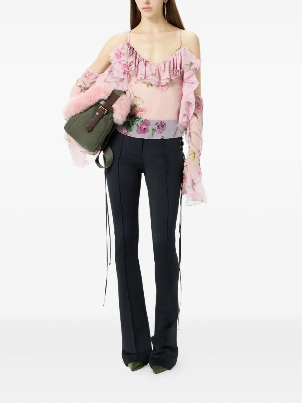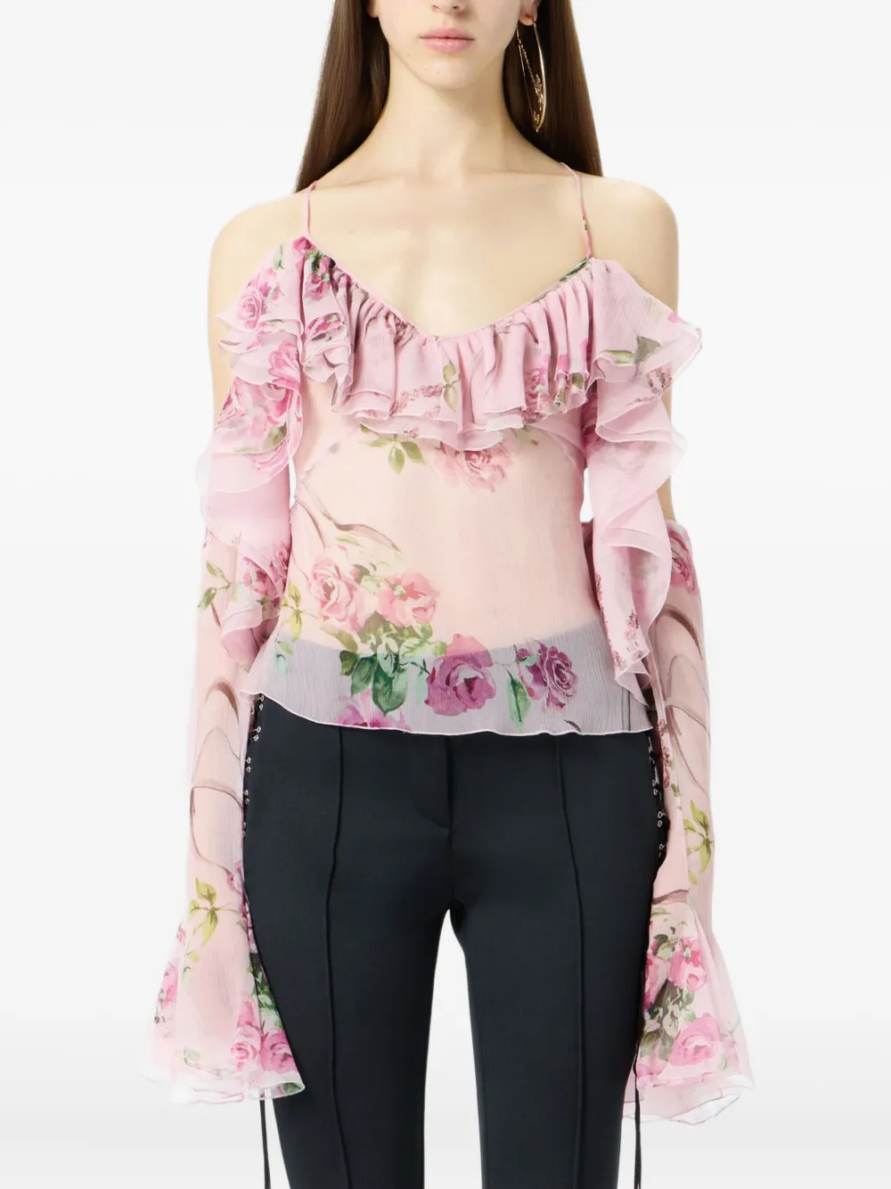 Топ с оборками и цветочным принтом BLUMARINE, розовый 55 750₽