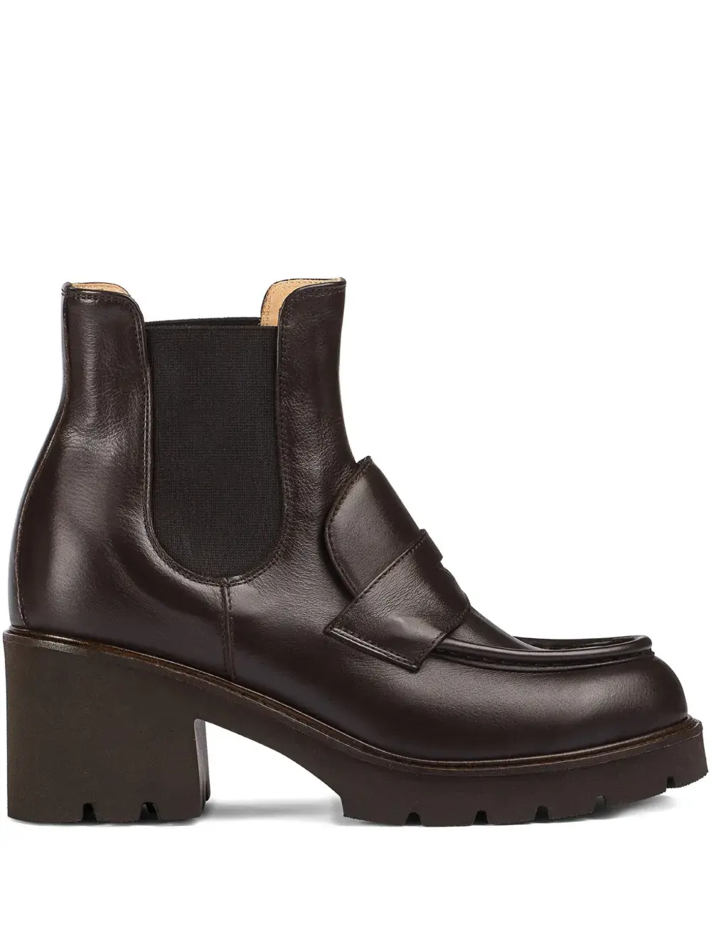Коричневаятелячья кожаэластичная боковая вставкаремешок-пенникаблук-столбик