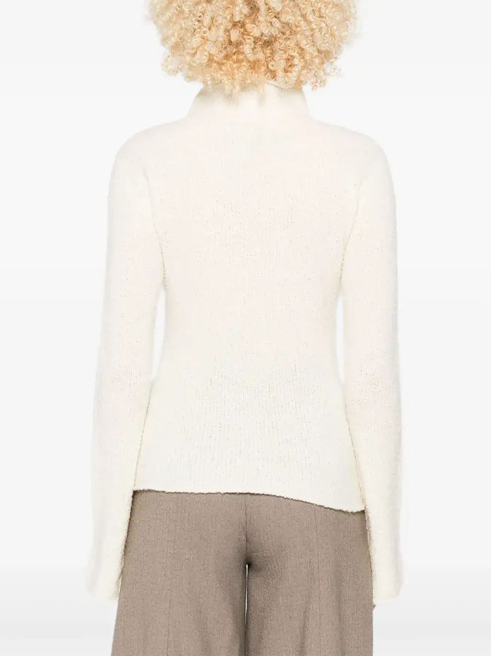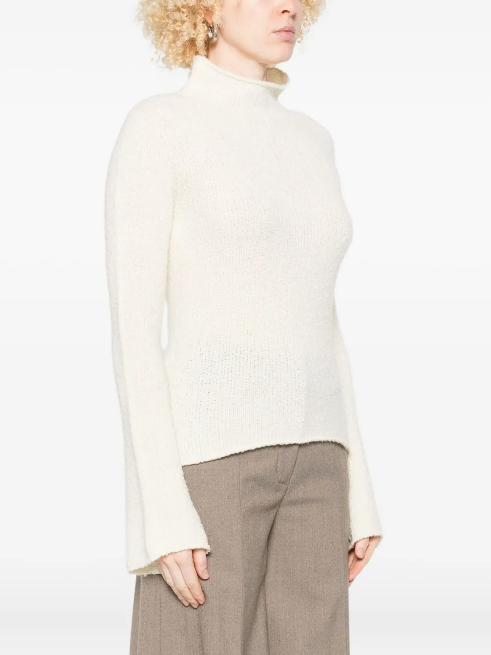 Белый шерсть высокий воротник текстура в рубчик длинные рукава