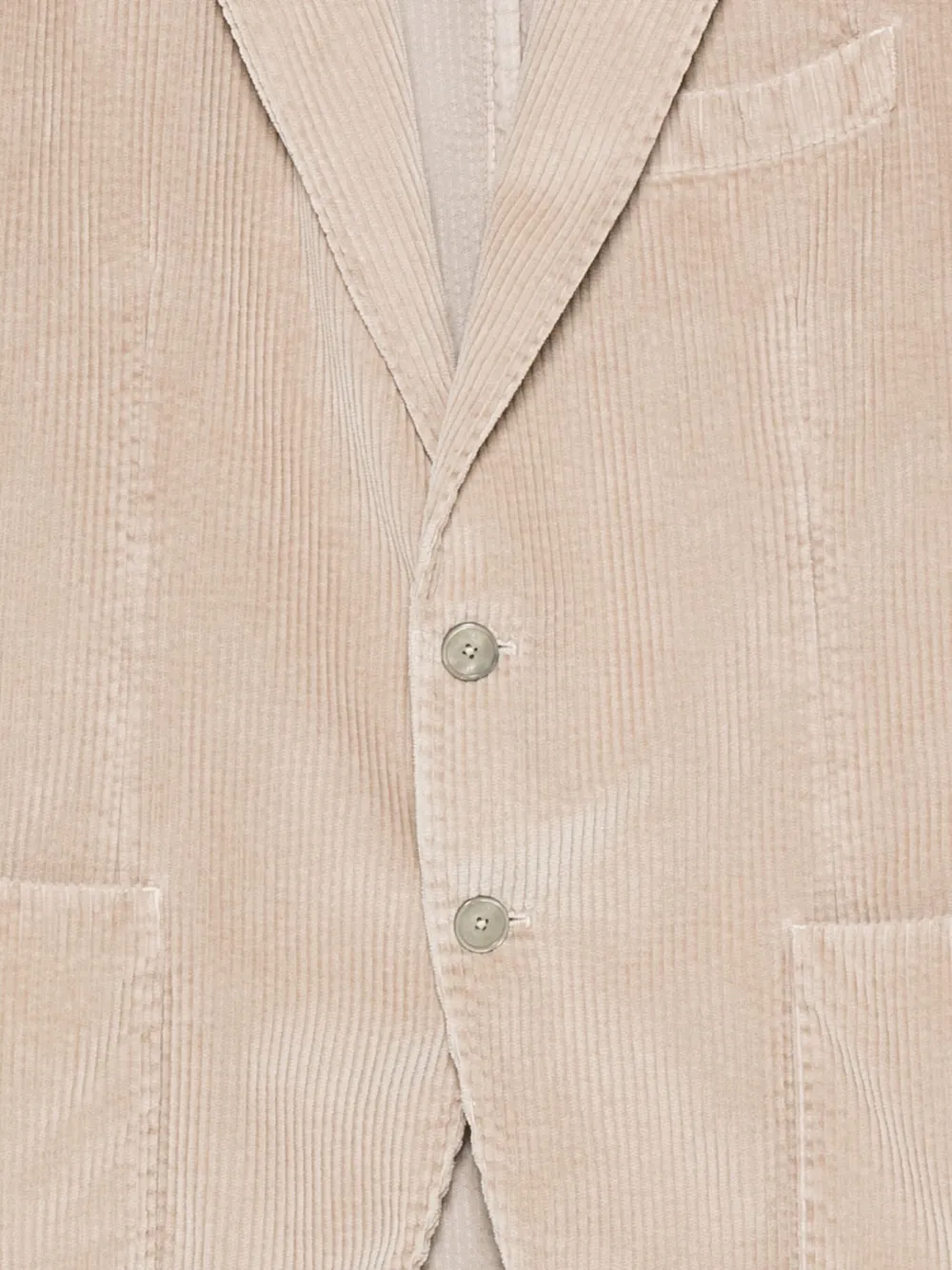 Бежевый вельветовая текстура лацканы с вырезом застежка на пуговицы спереди нагрудный прорезной карман накладные карманы спереди