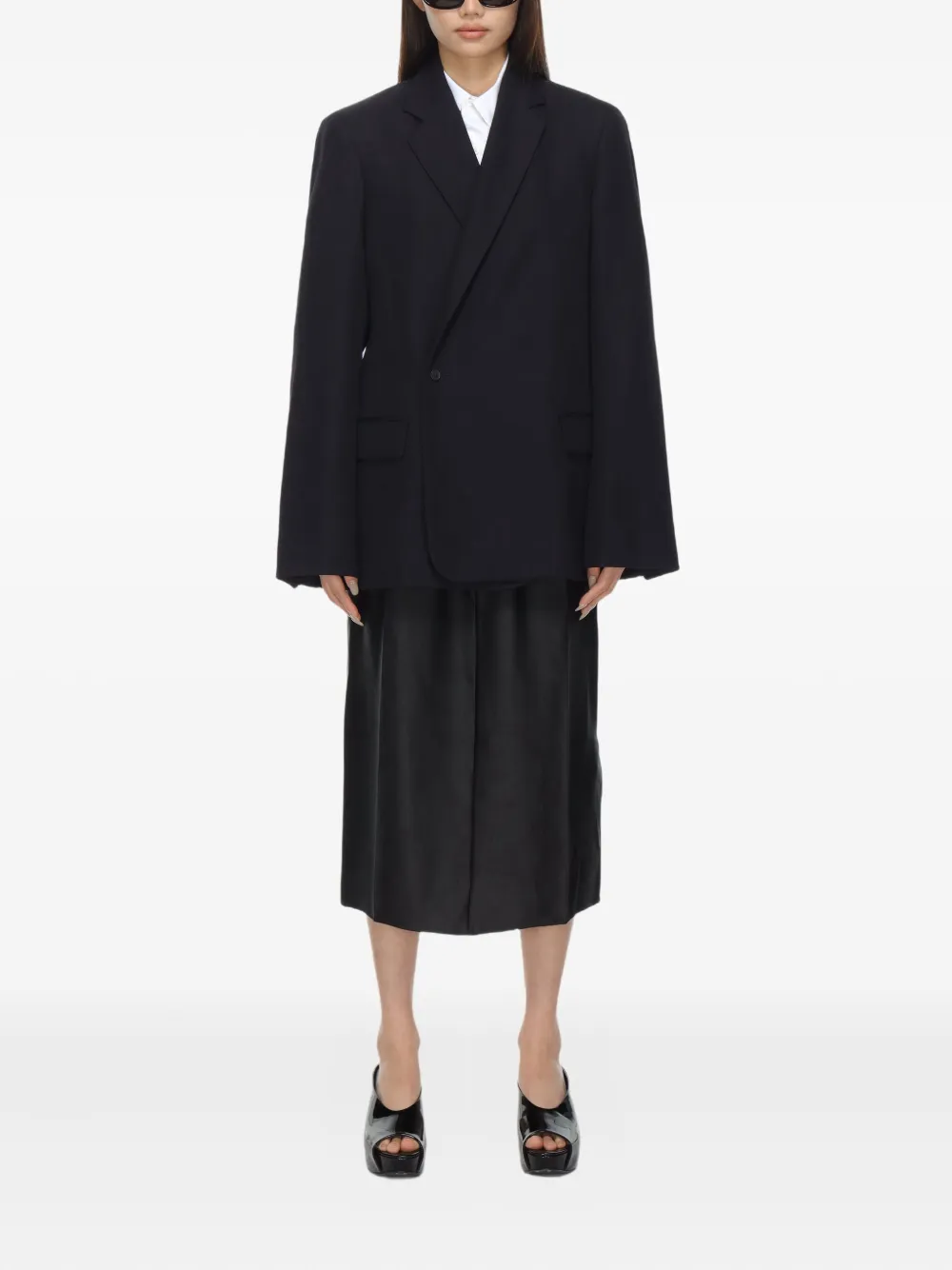 Двубортный шерстяной пиджак Carven, черный