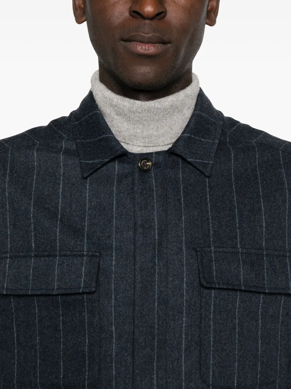 Рубашка в тонкую полоску с карманом Eleventy, синий