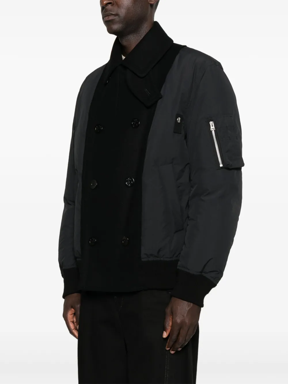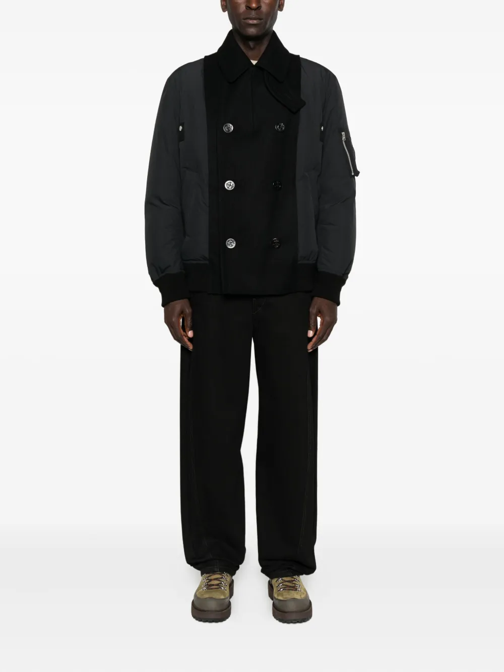 Двубортный шерстяной пиджак SACAI, черный