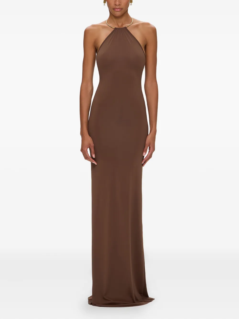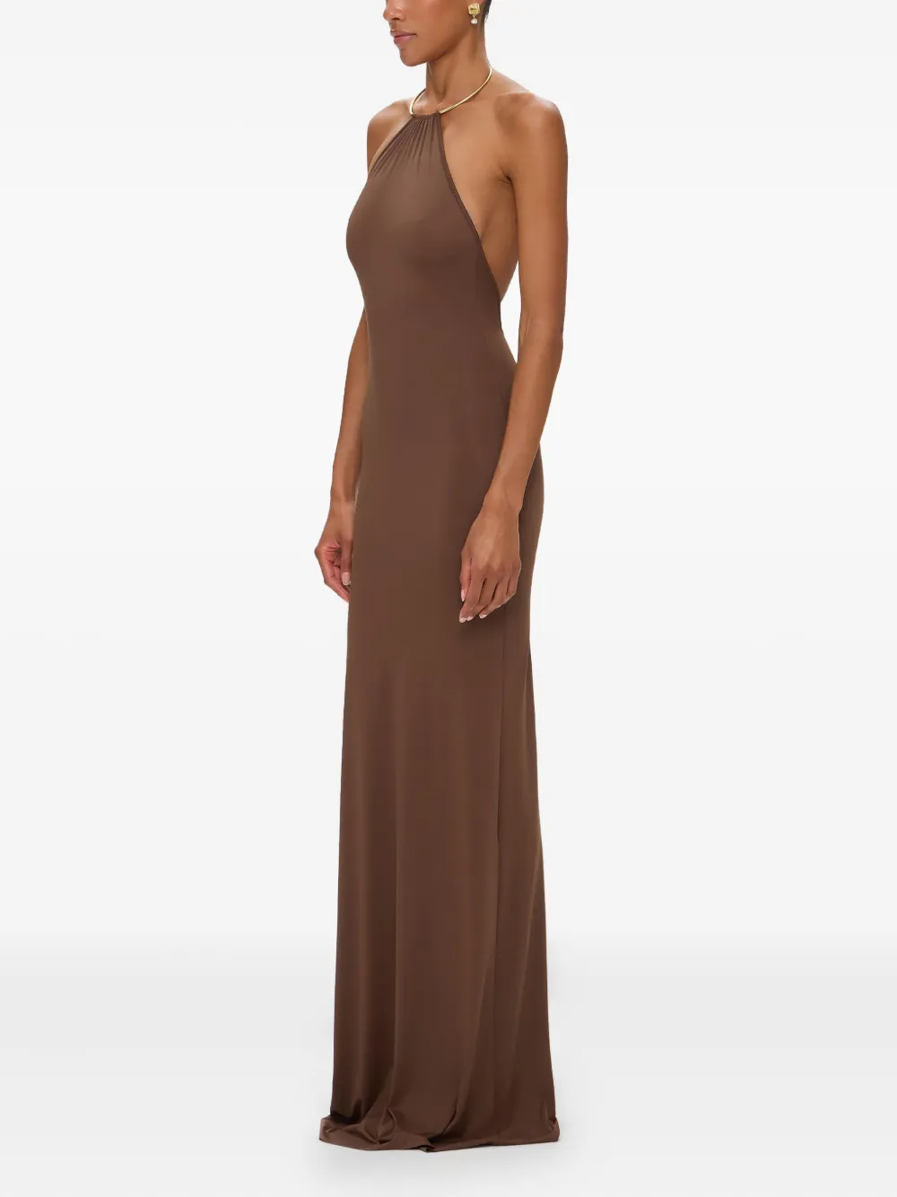 Платье макси с вырезом халтер KOROBEYNIKOV, коричневый