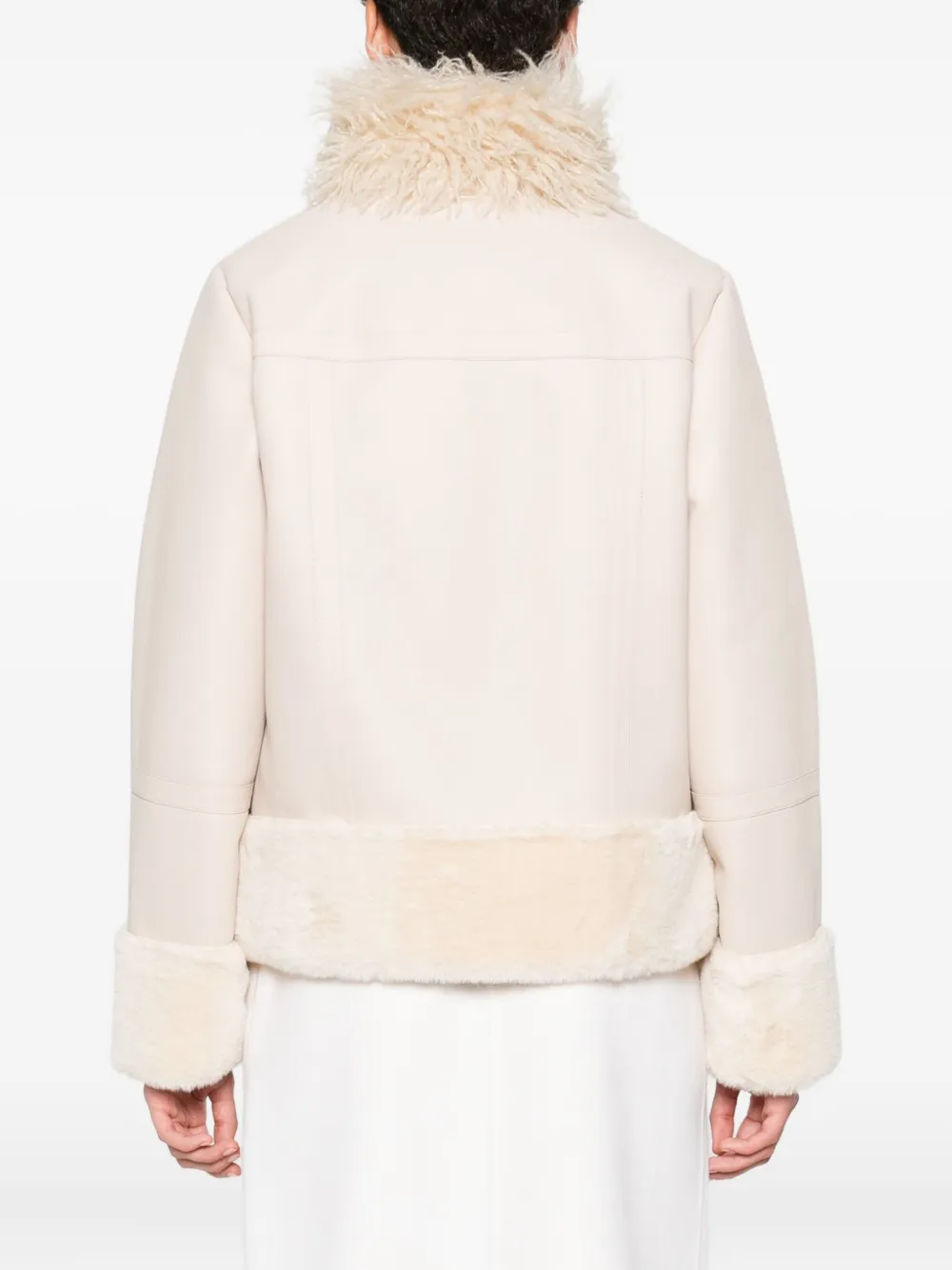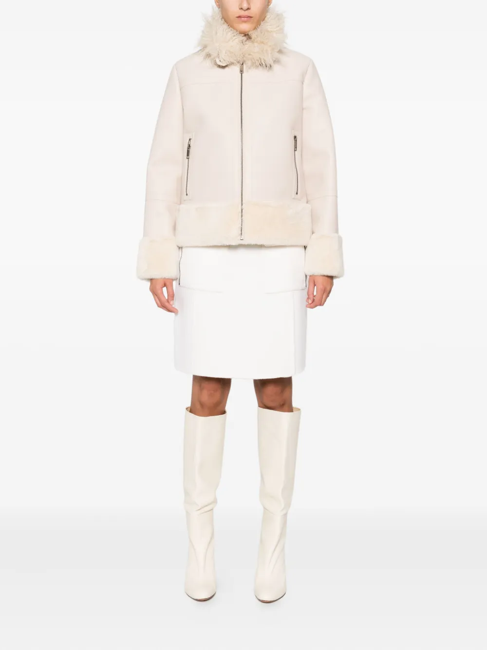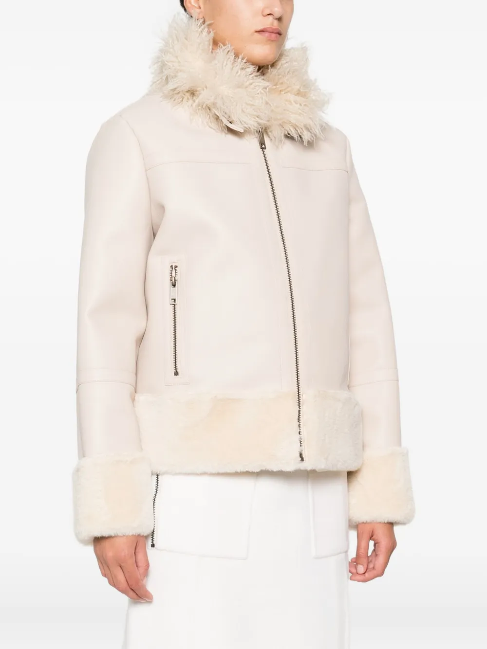 Бежевый искусственный меховой воротник, застежка-молния, манжеты из искусственного меха, карманы на молнии, длинные рукава