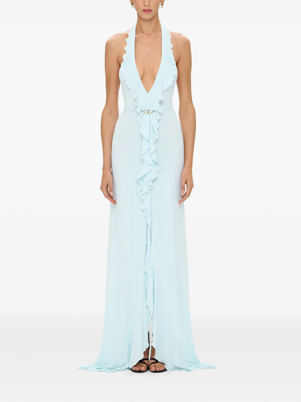 Платье макси с V-образным вырезом и оборками KOROBEYNIKOV, синий