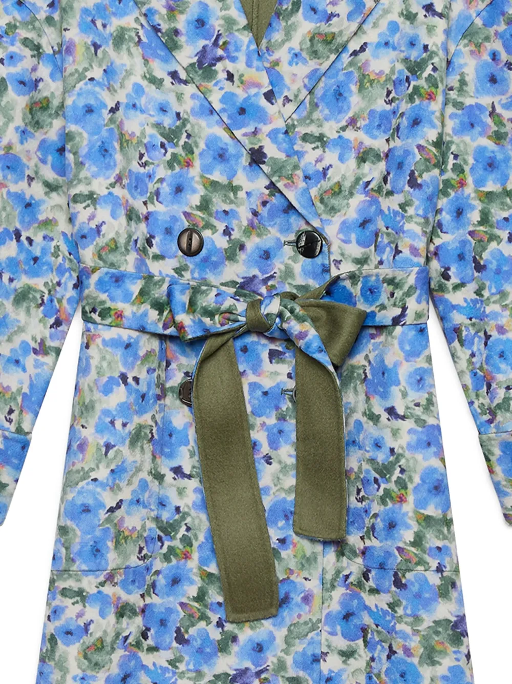 Двубортное пальто с цветочным принтом MALIPARMI, синий