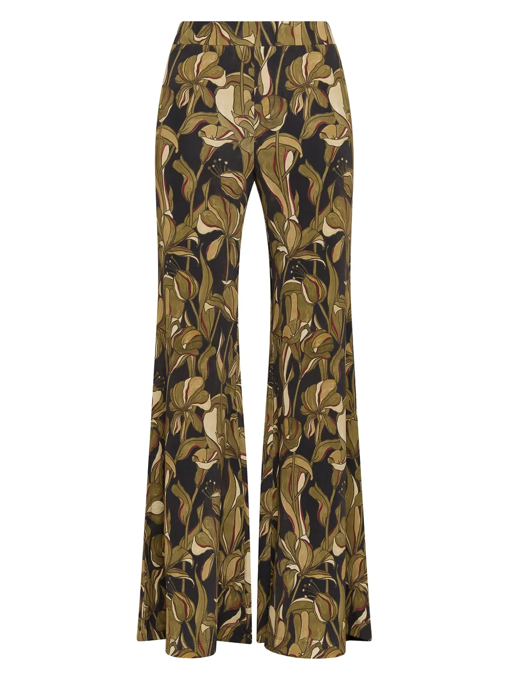 Зеленый с цветочным принтом расклешенные брючины эластичный пояс