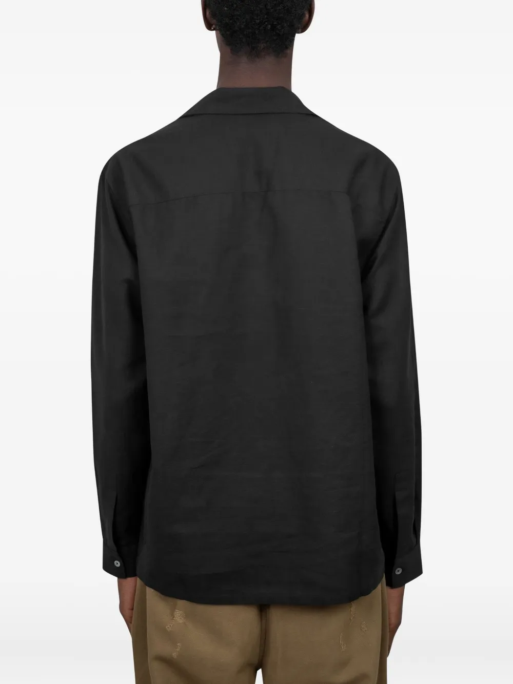 Черная рубашка с вышивкой в виде пальмы, воротник-ревер, длинные рукава, застежка на пуговицы, нагрудный карман