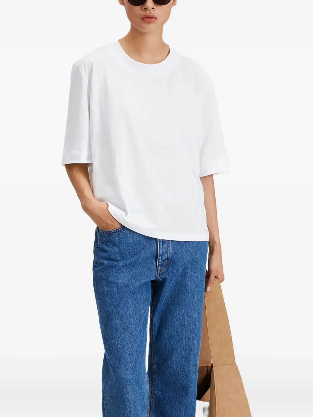 Белая футболка свободного кроя с круглым вырезом и прямым подолом из органического хлопка