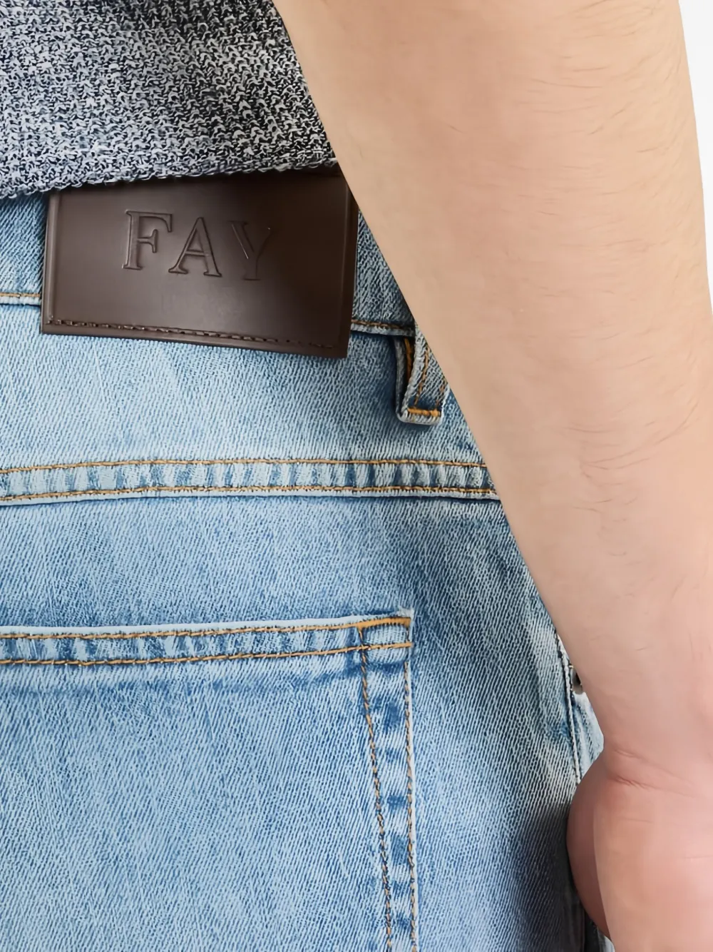 Джинсы с кожаной нашивкой Fay, синий