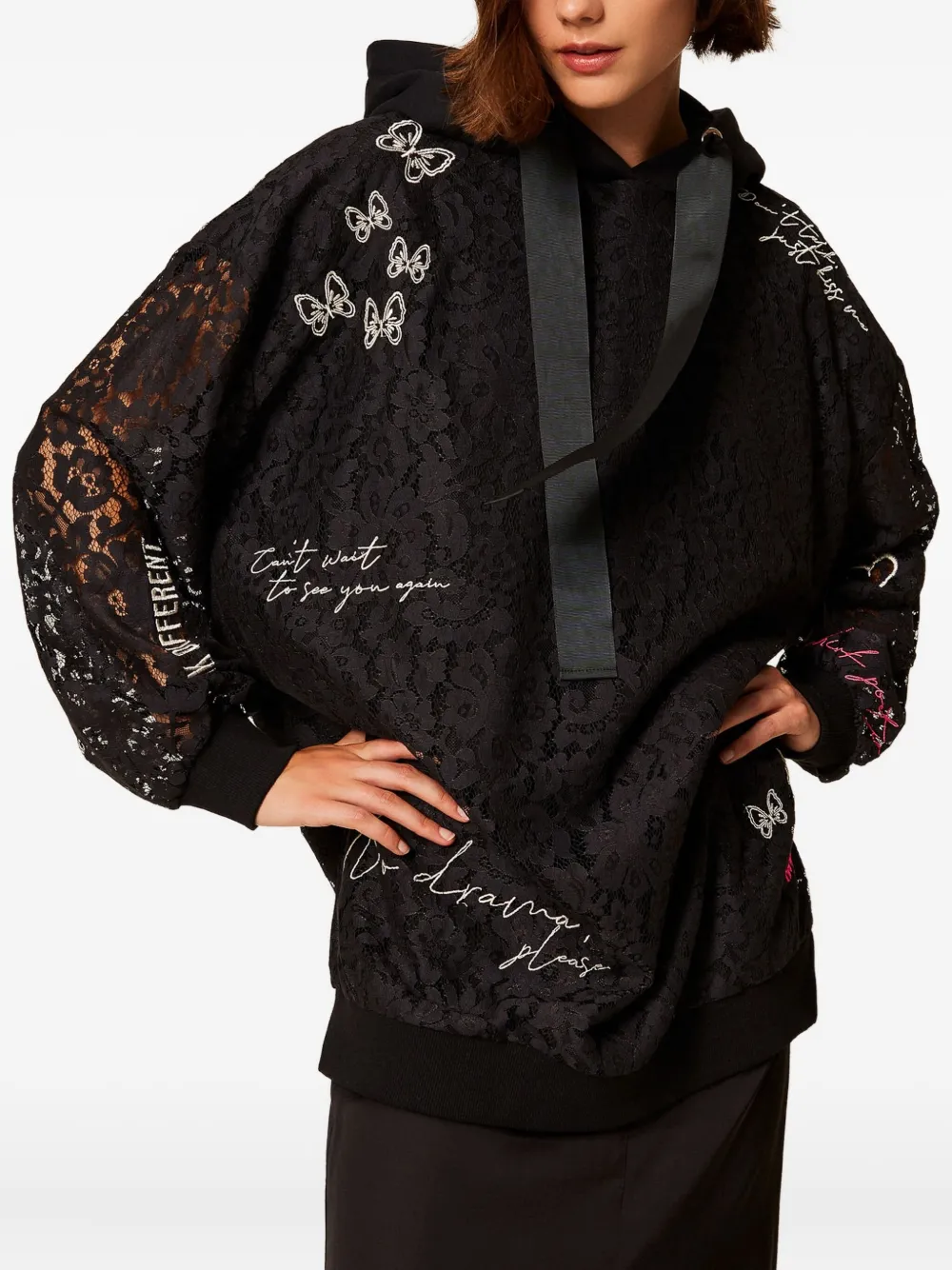 Кружевное худи TWINSET, черный