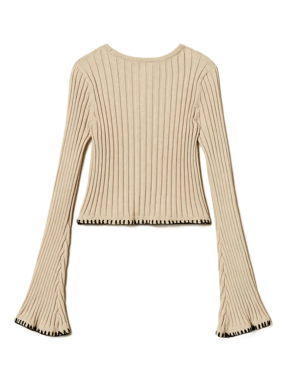 Вышитый джемпер в рубчик TWINSET Kids, нейтральный