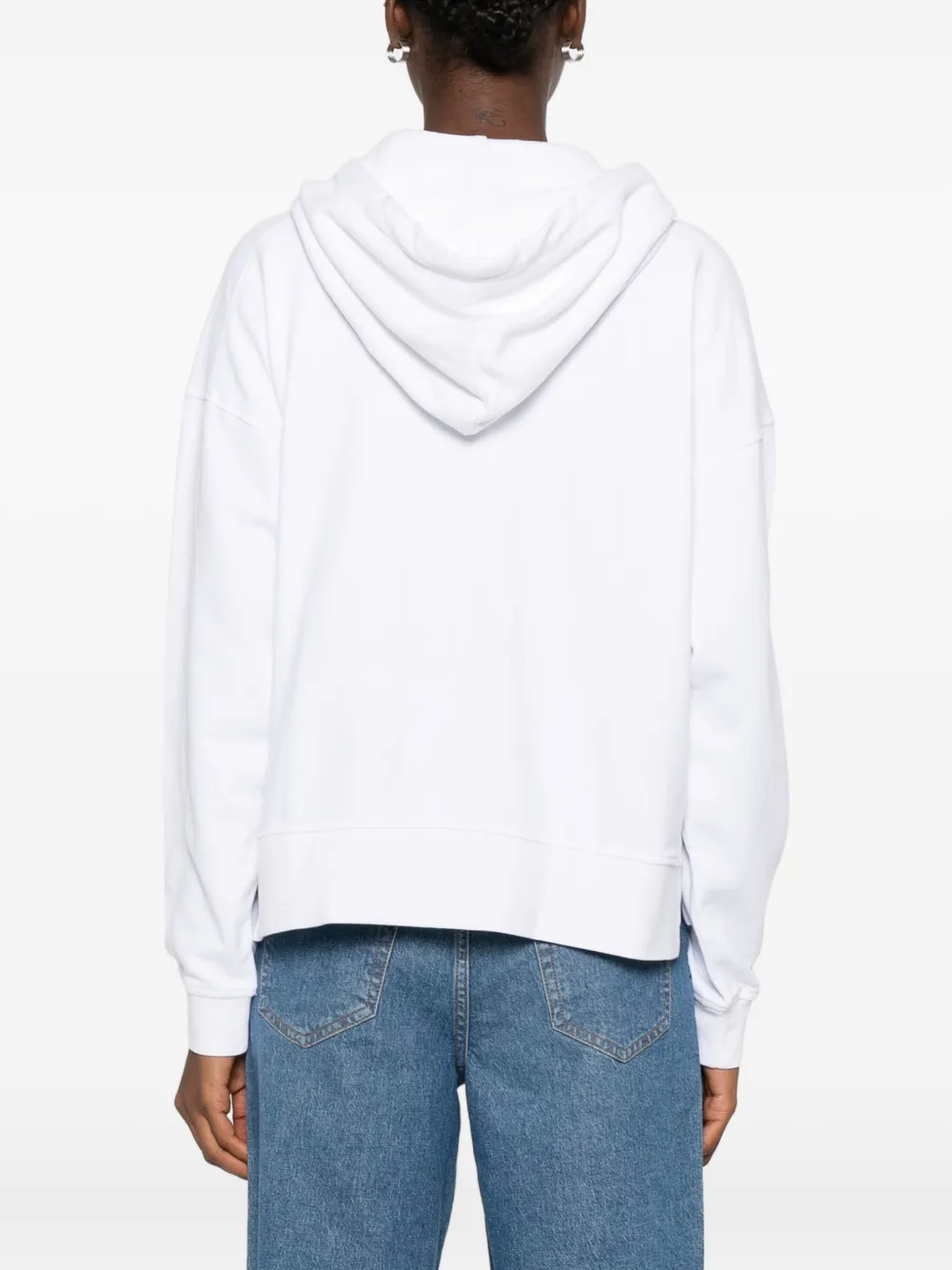 Белый капюшон застежка-молния спереди длинные рукава рукава на манжетах