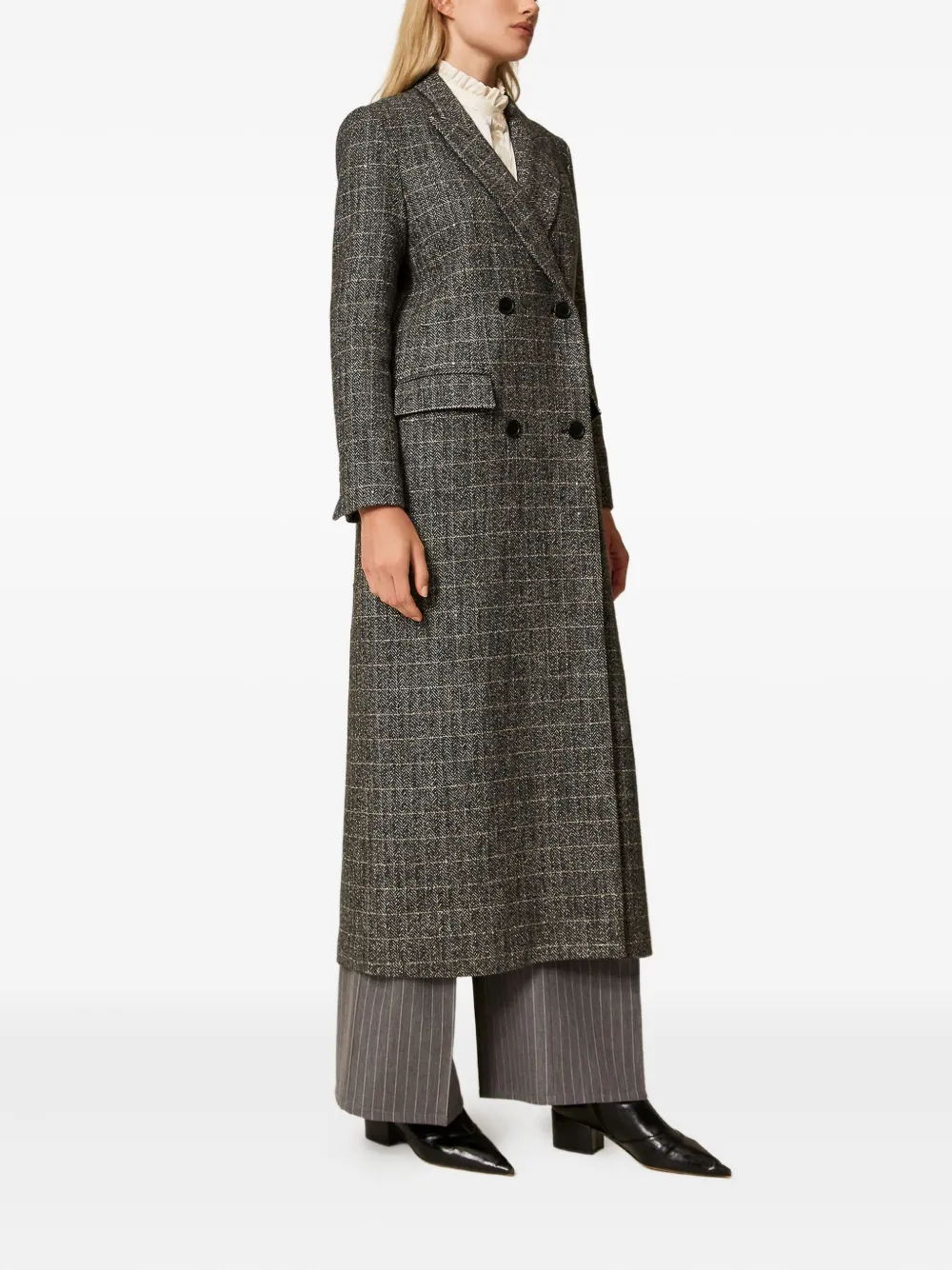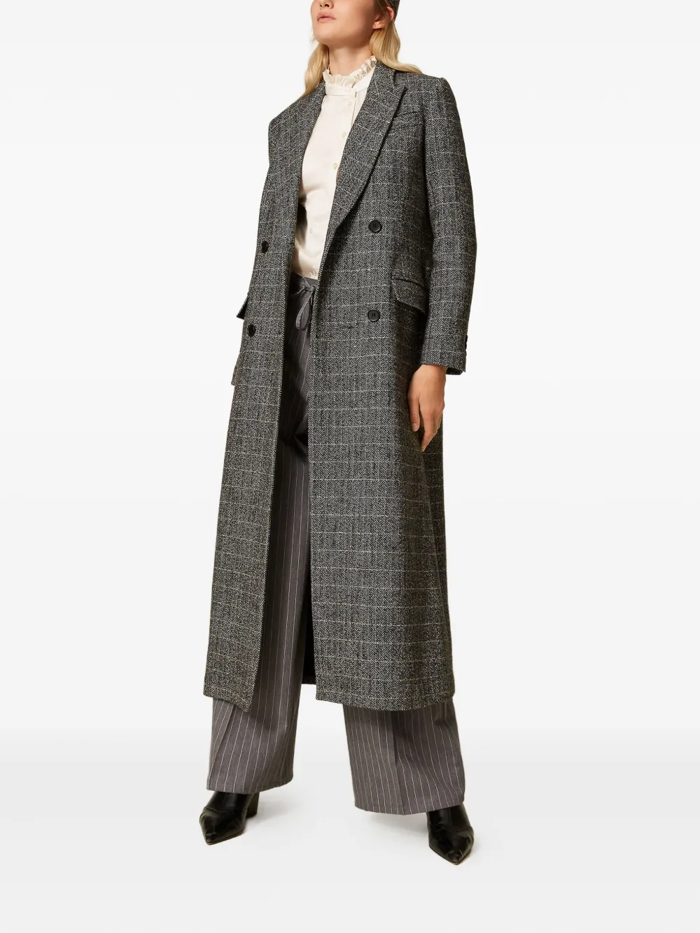 Двубортное пальто в клетку TWINSET, черный