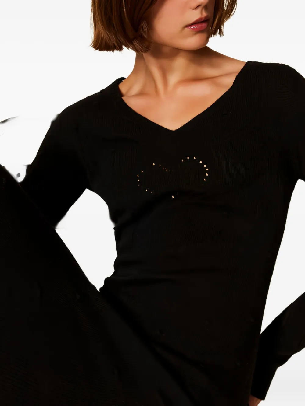 Фактурное платье с V-образным вырезом TWINSET, черный