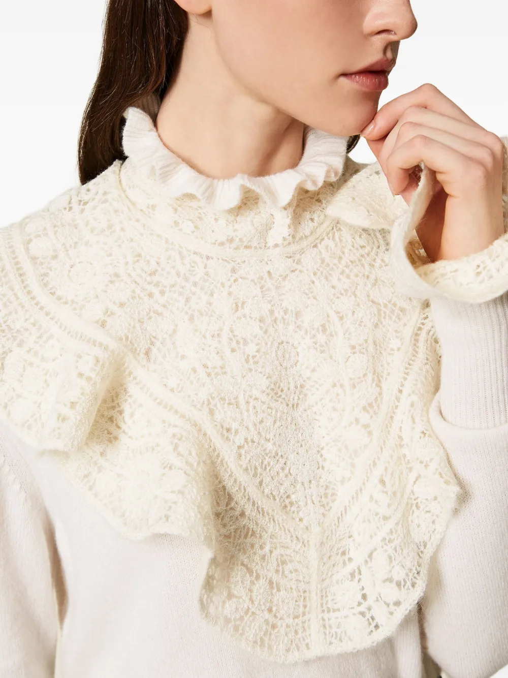 Джемпер с оборками и кружевом TWINSET, белый