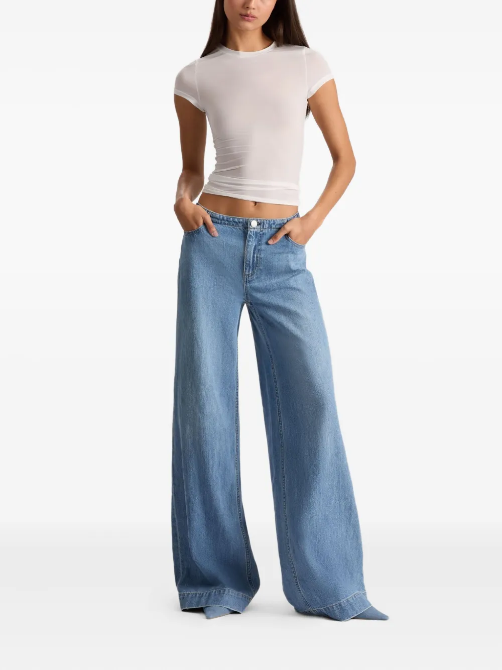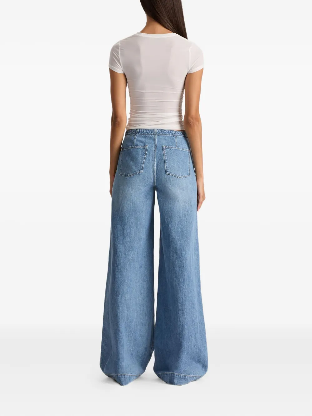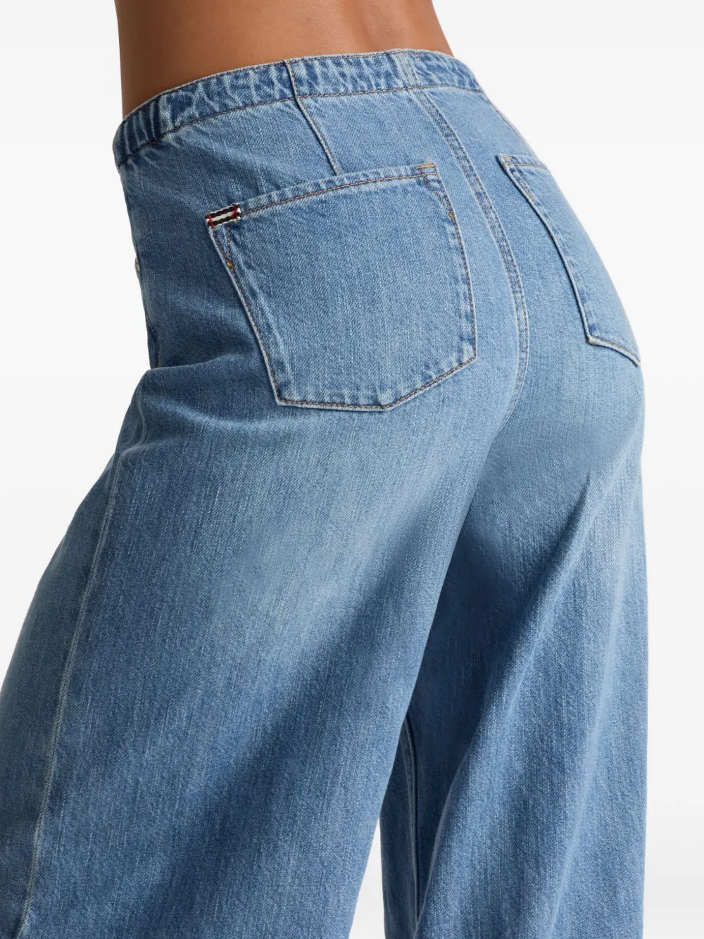 Светло-голубые высокая талия застежка на пуговицах пять карманов