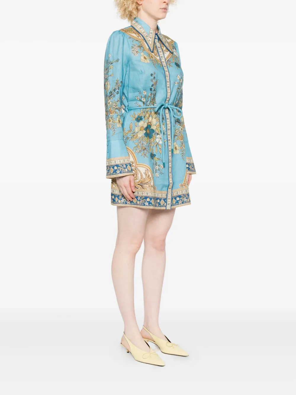 Платье с поясом и цветочным принтом ALEMAIS, синий