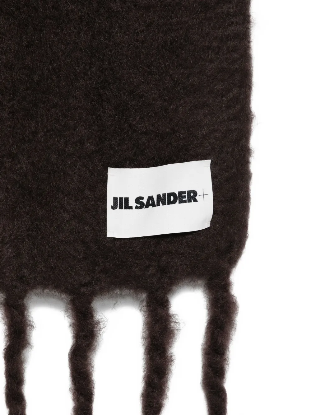 Шерстяной шарф с бахромой JIL SANDER, коричневый