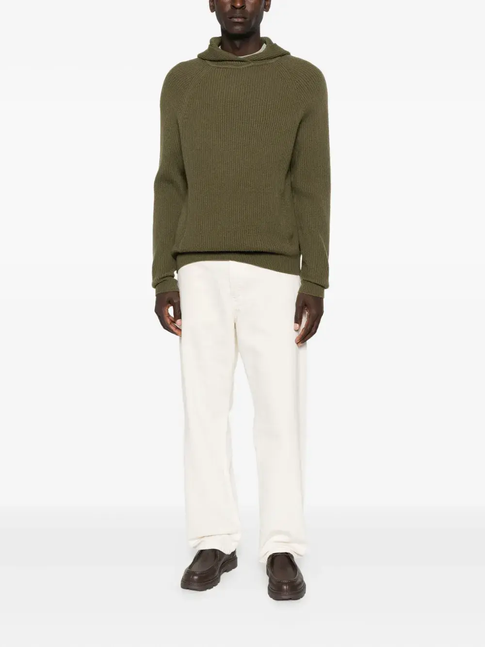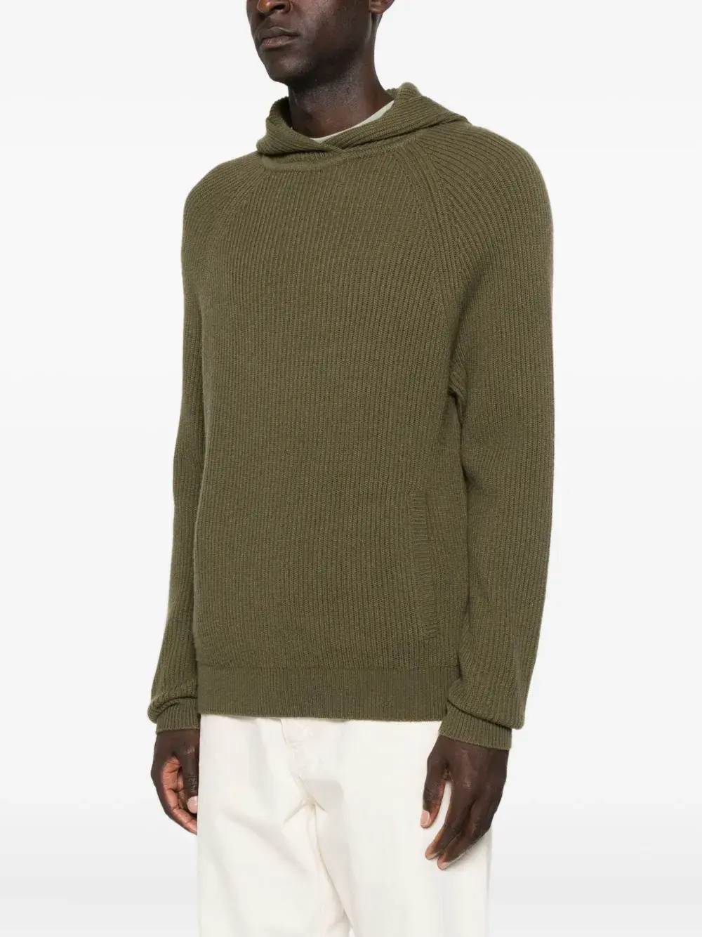 Свитер в рубчик с капюшоном Eric Bompard, зеленый