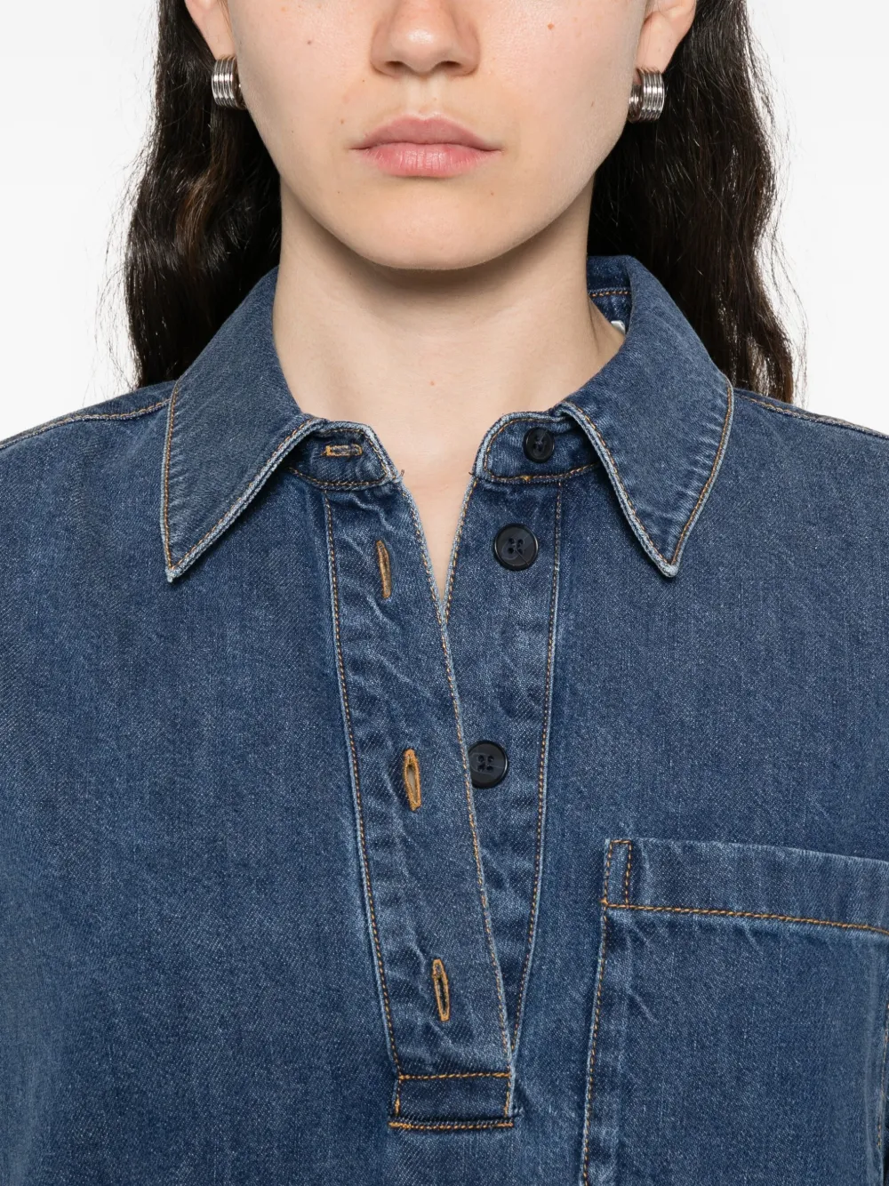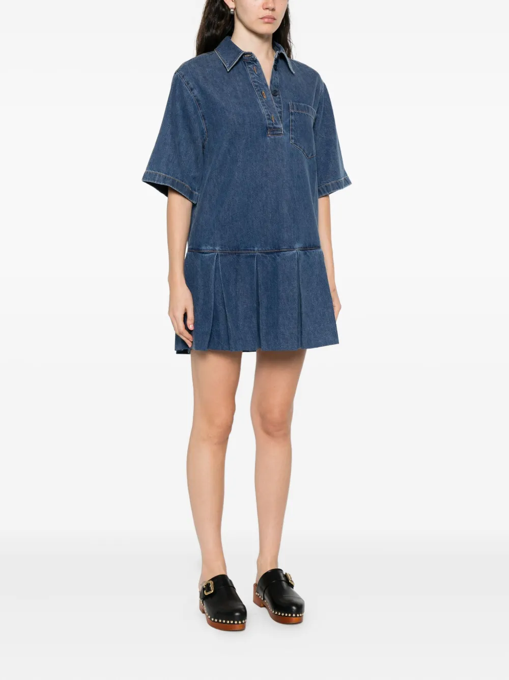 Плиссированное джинсовое платье-рубашка FRAME, синий