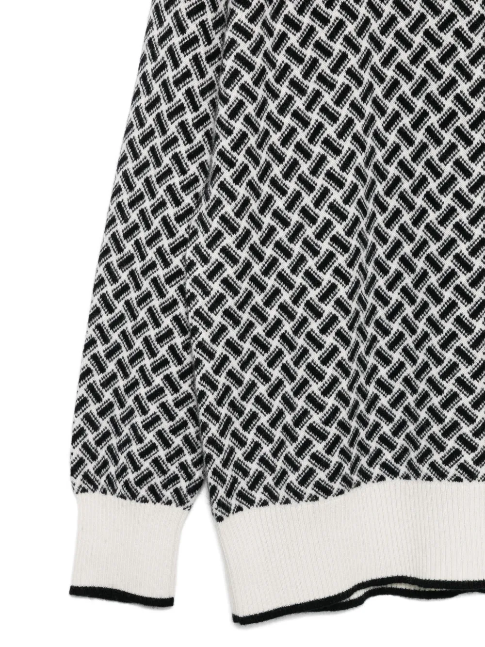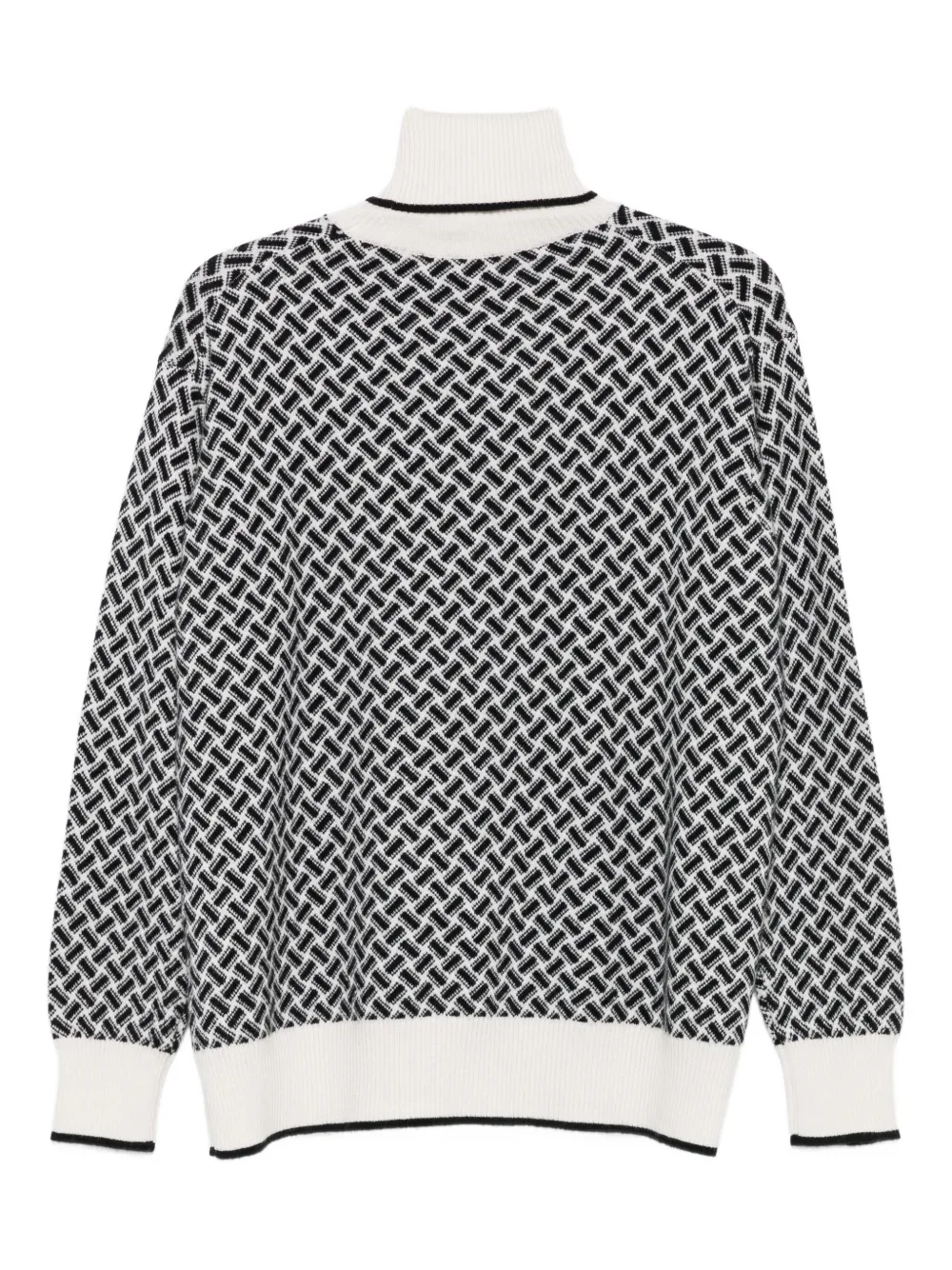 Белый геометрический узор водолазка длинные рукава манжеты в рубчик низ в рубчик
