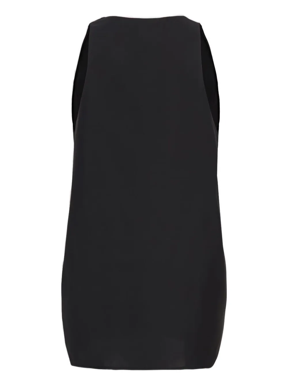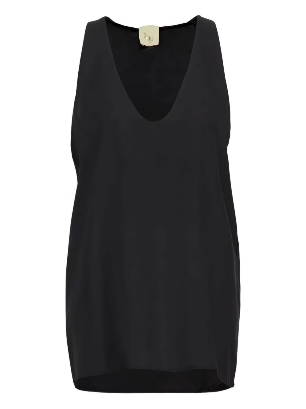 Черный шелковый топ с V-образным вырезом, без рукавов, прямой низ, свободный крой