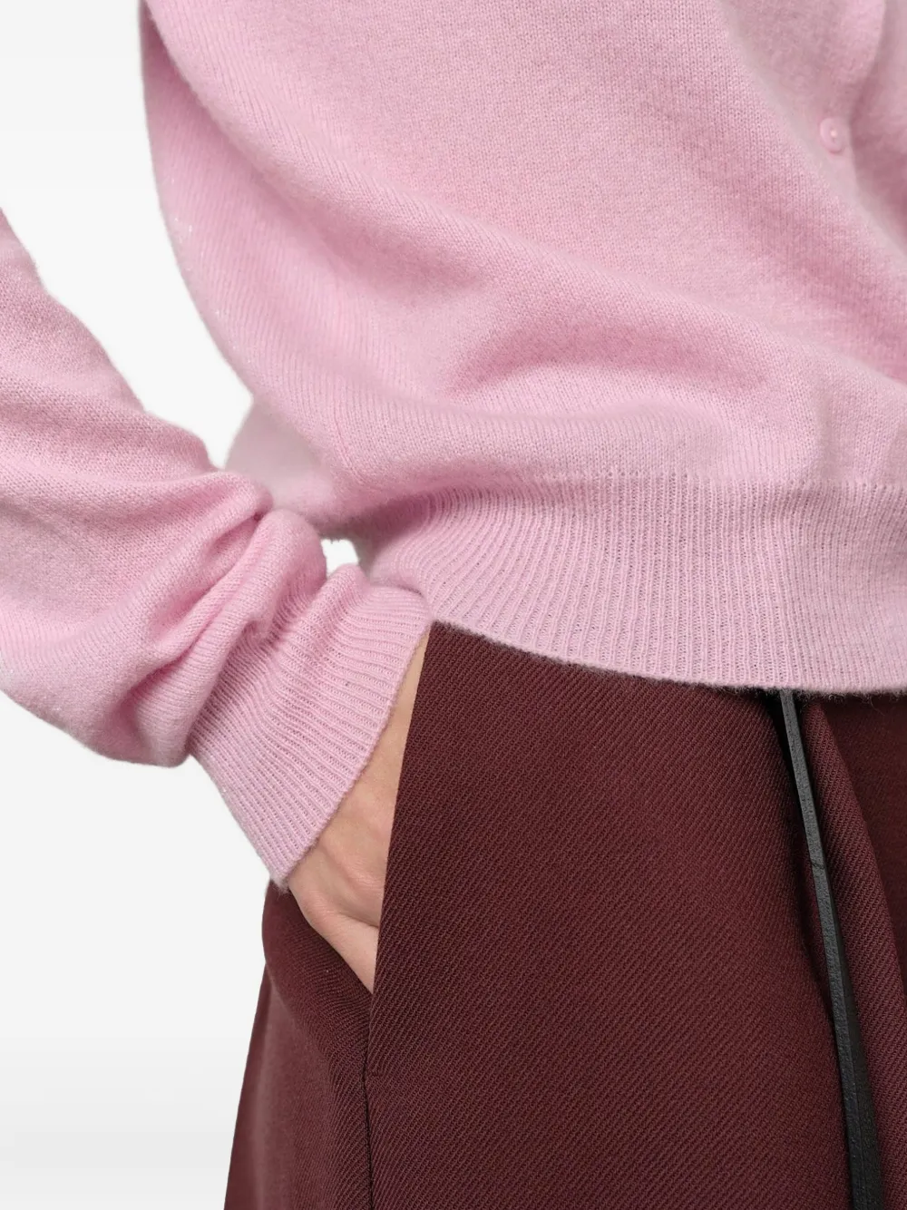 Жвачечно-розовый круглый вырез длинные рукава застежка на пуговицы рубчатый край кашемир