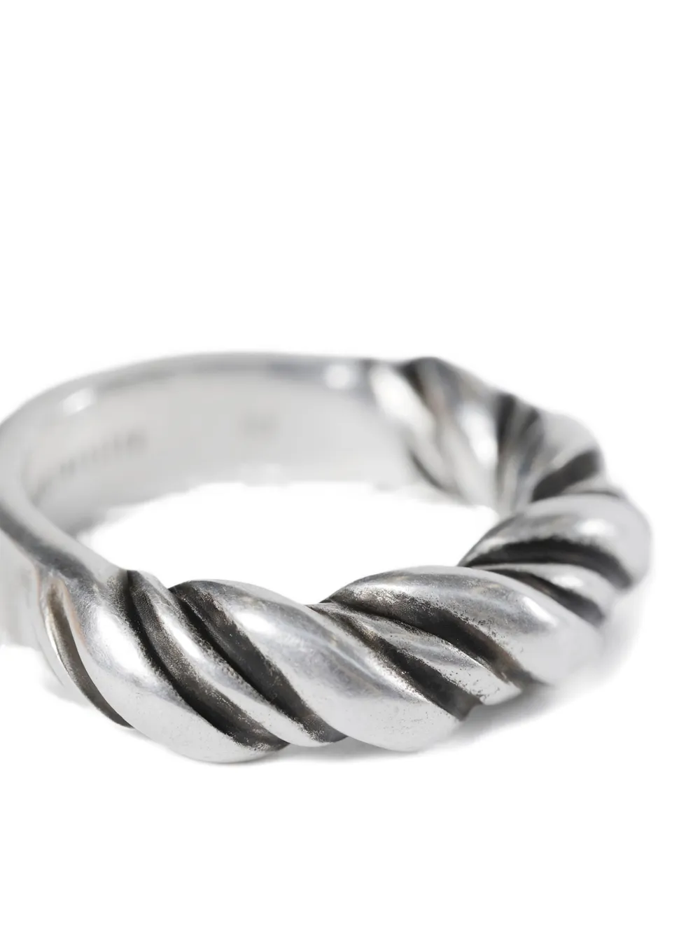 Серебряное кольцо с эффектом скручивания, гравировкой и гладкой поверхностью