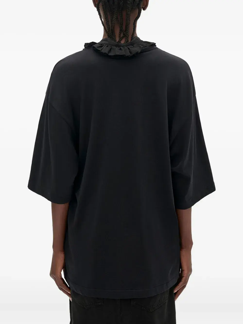 Черный хлопковый топ с графическим принтом, съемным воротником с рюшами, короткими рукавами