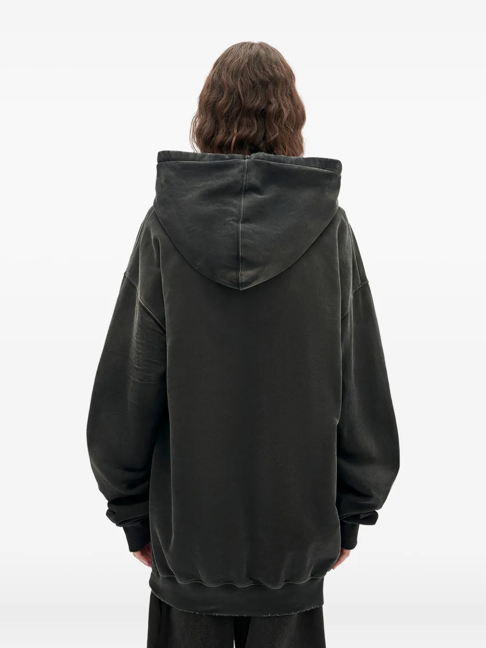 Черный хлопок капюшон со шнурком заниженные плечи эффект состаренности бахромчатый край