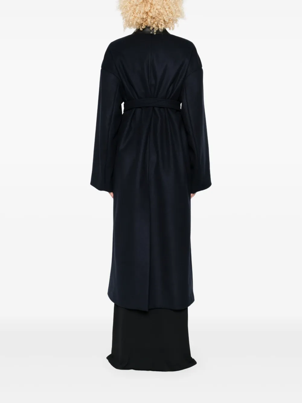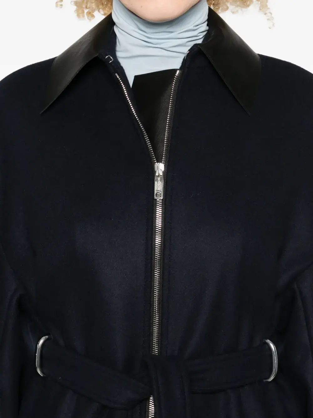 Темно-синий застежка-молния спереди пояс на завязках длинные рукава