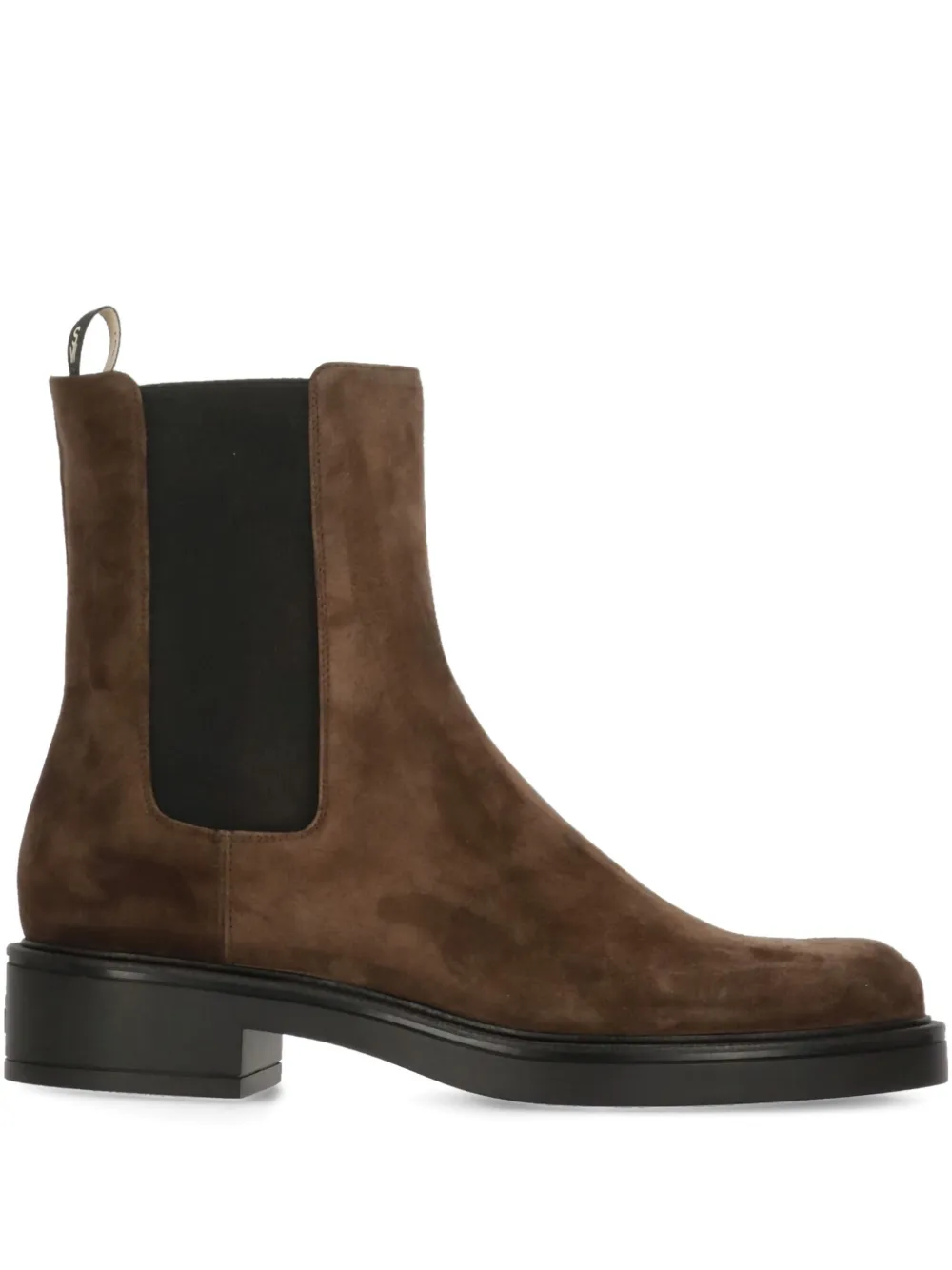 Коричневыйзамшакруглый носбоковая эластичная вставкакаблук 40 ммплоская подошва
