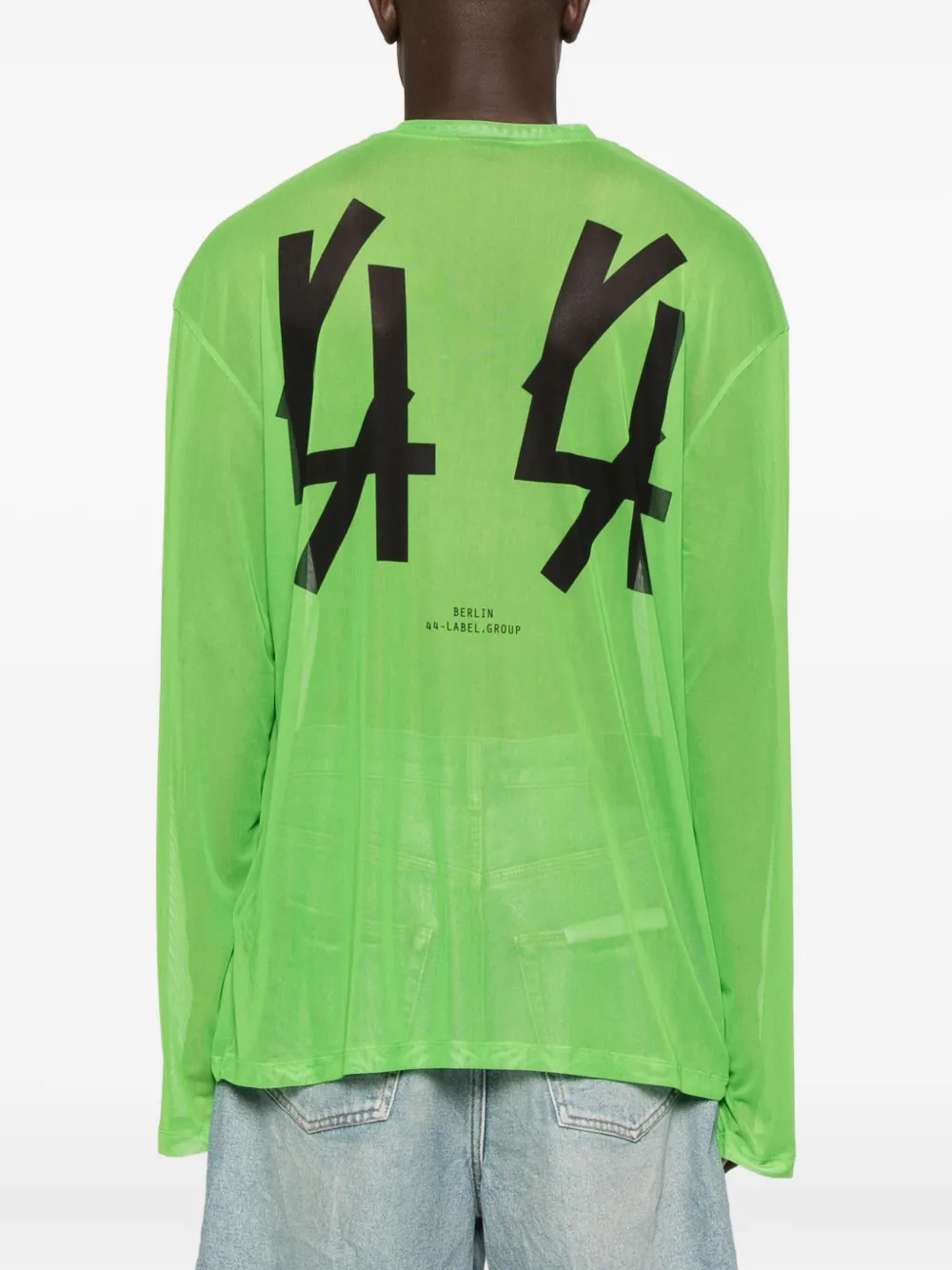 Лаймово-зеленый сетчатая ткань длинные рукава круглый вырез принт-логотип свободный крой