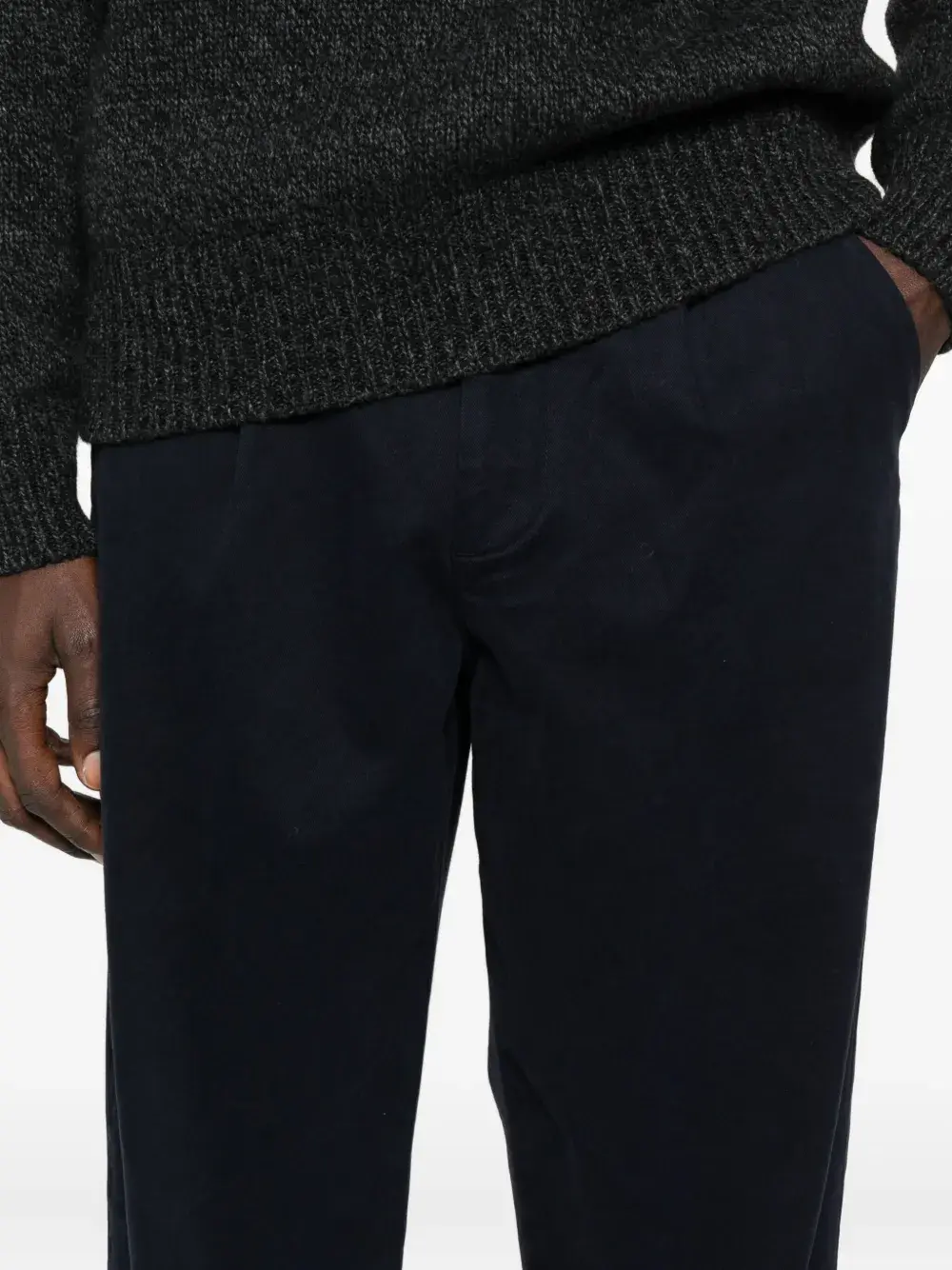 Темно-синий плиссованная передняя часть боковые карманы застежка на пуговицу и молнию прямые брючины