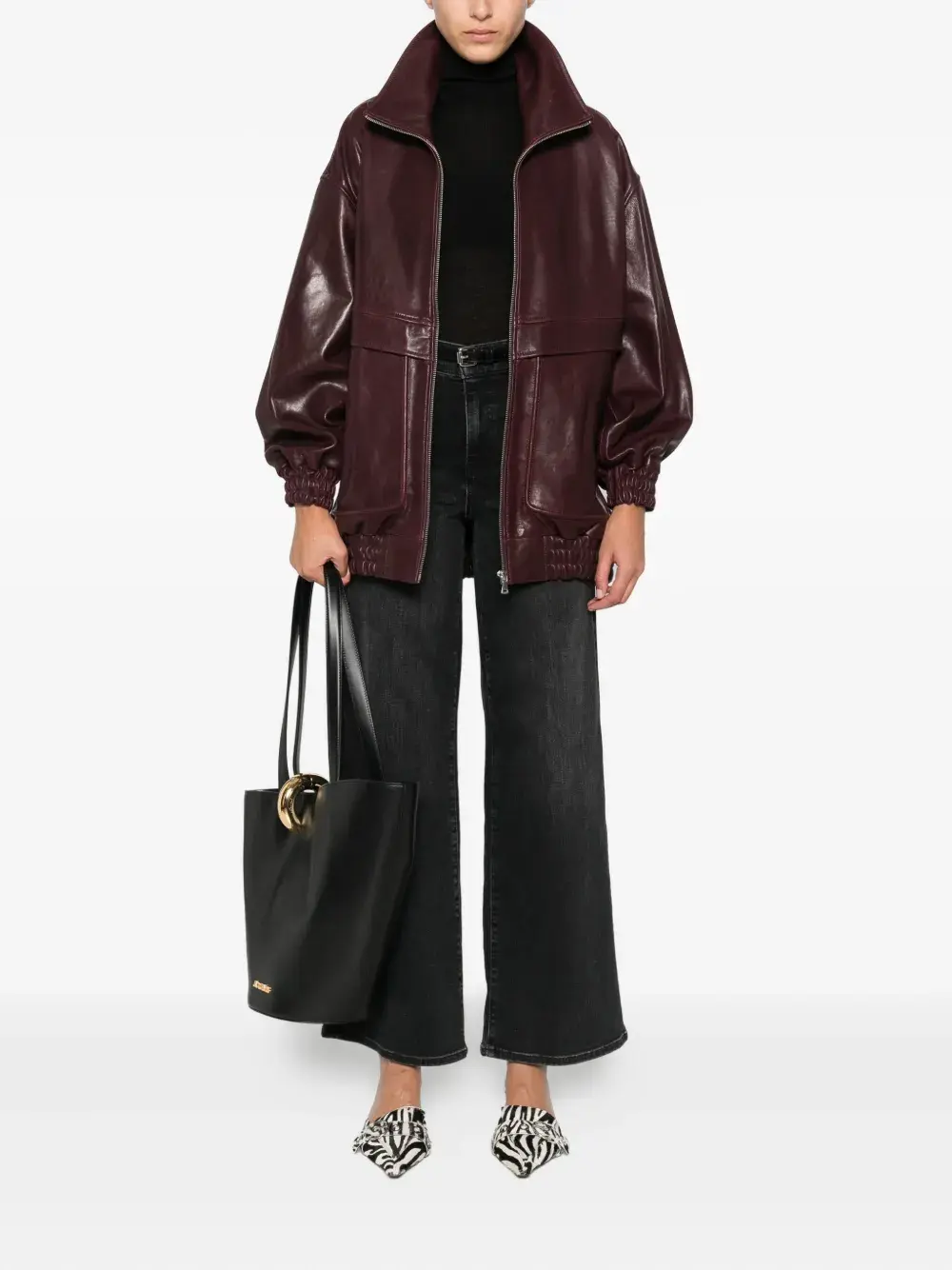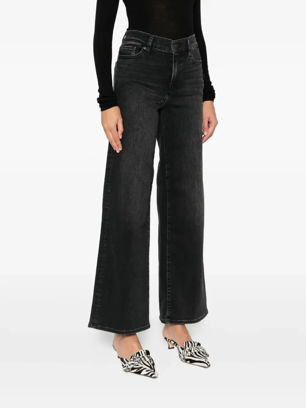 Черные брюки с широкой штаниной, высокой талией, пуговичной застежкой, пятью карманами и прямым краем