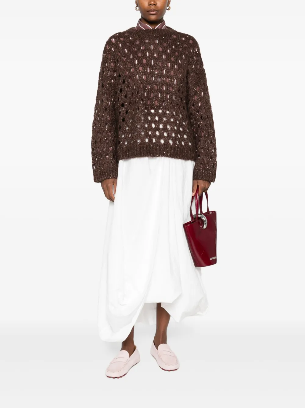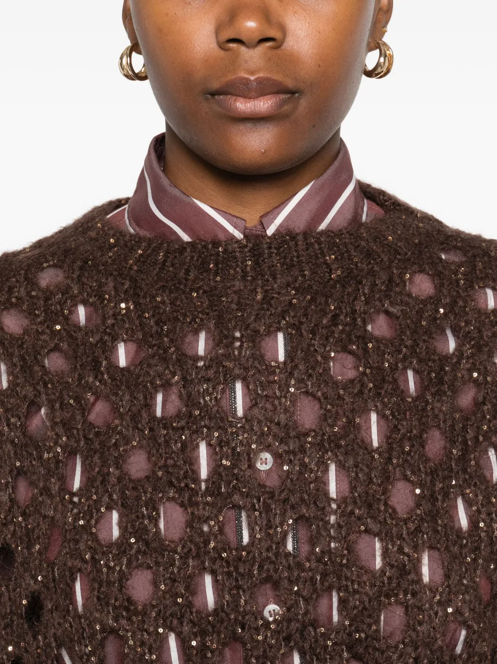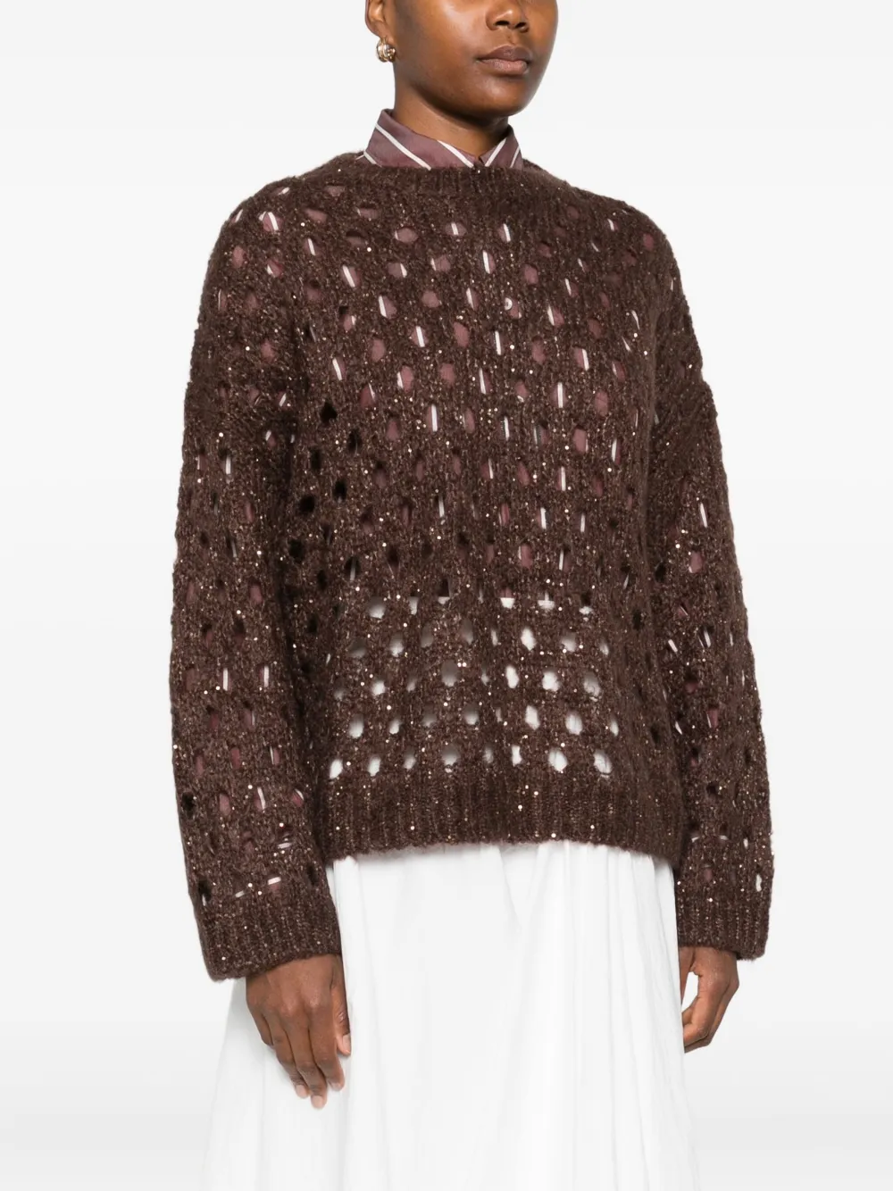 Свитер с пайетками Brunello Cucinelli, коричневый
