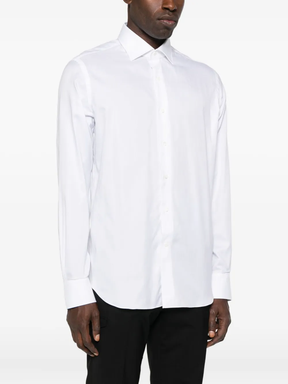 Белый длинные рукава застежка на пуговицы спереди классический воротник закругленный подол манжеты на пуговицах