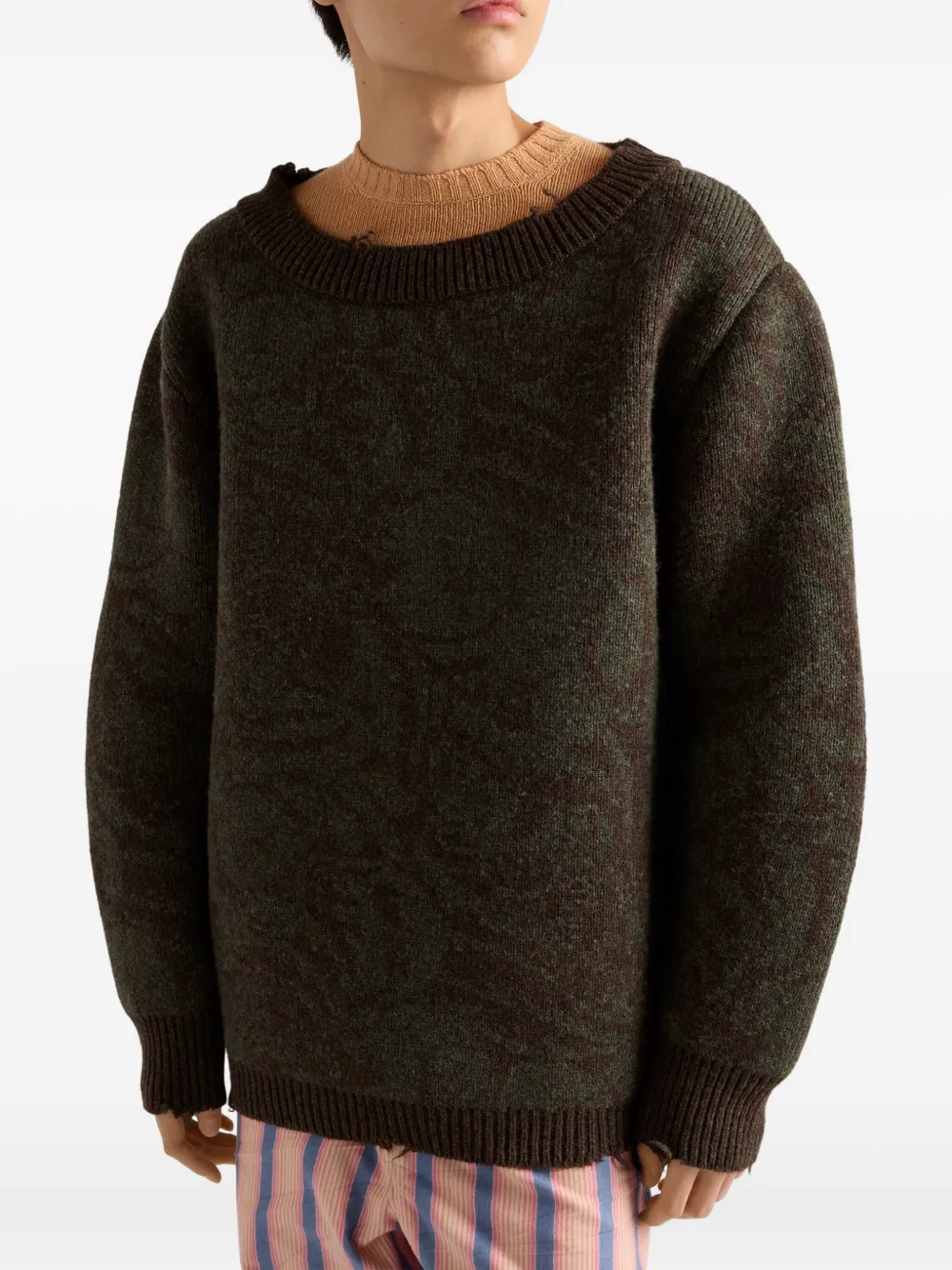 Шерстяной свитер с широким вырезом Prada, коричневый