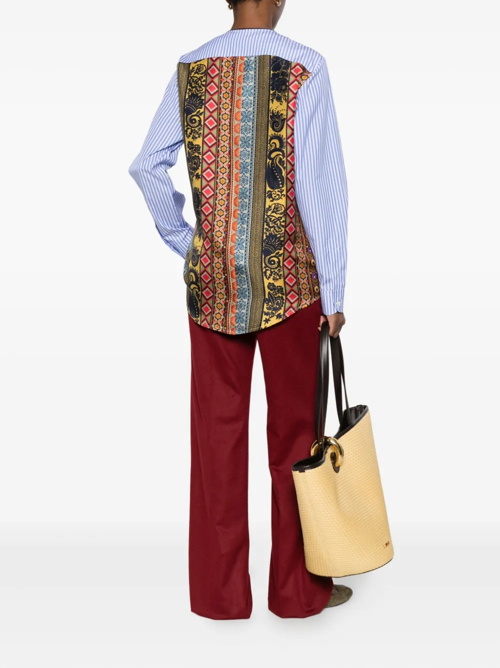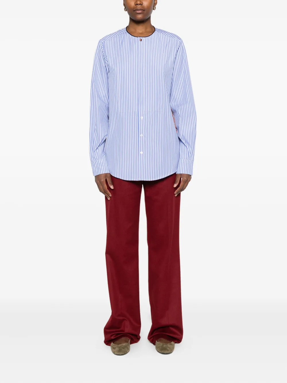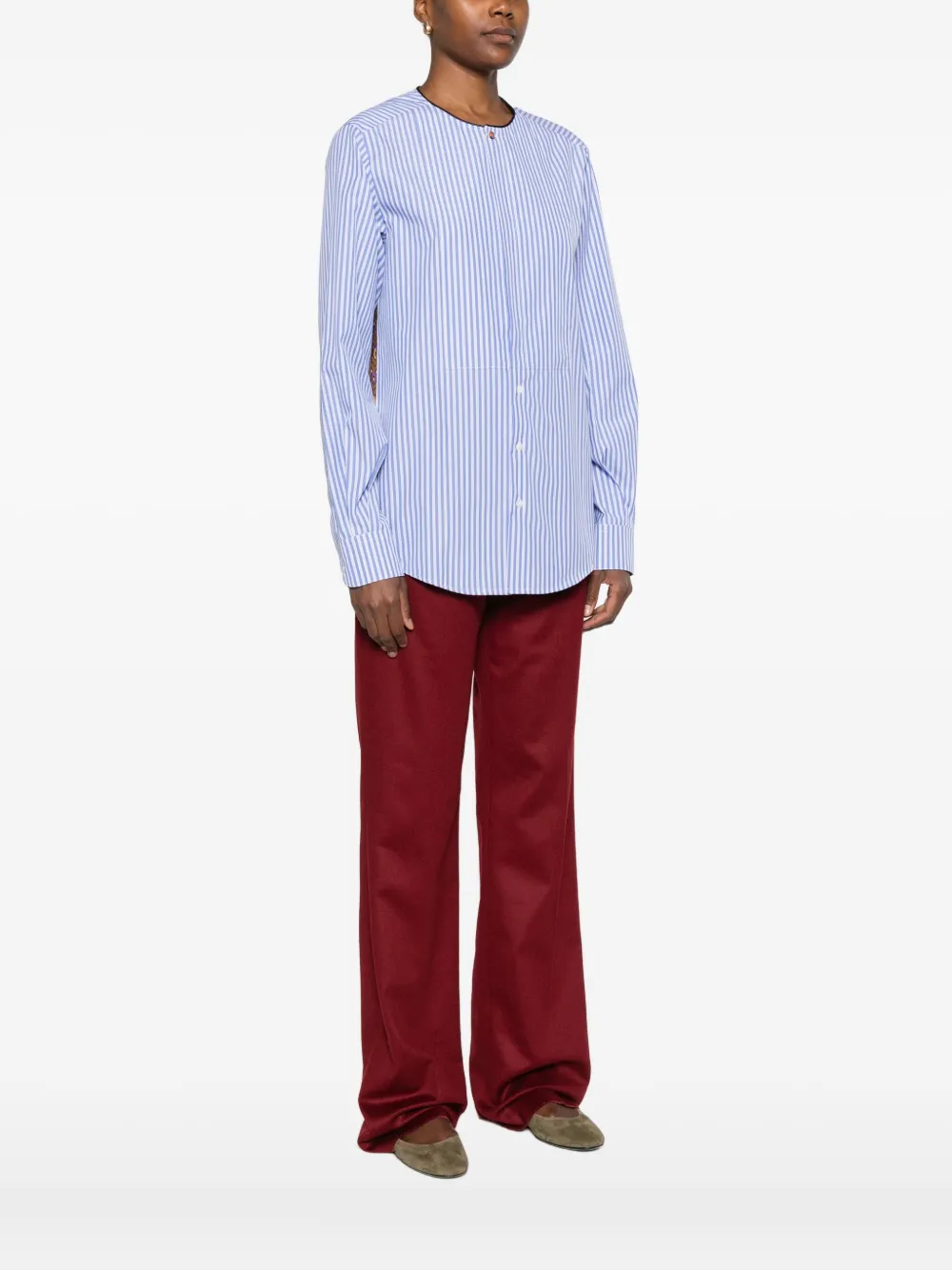 Светло-голубой вертикальные полоски застежка на пуговицы воротник-стойка длинные рукава