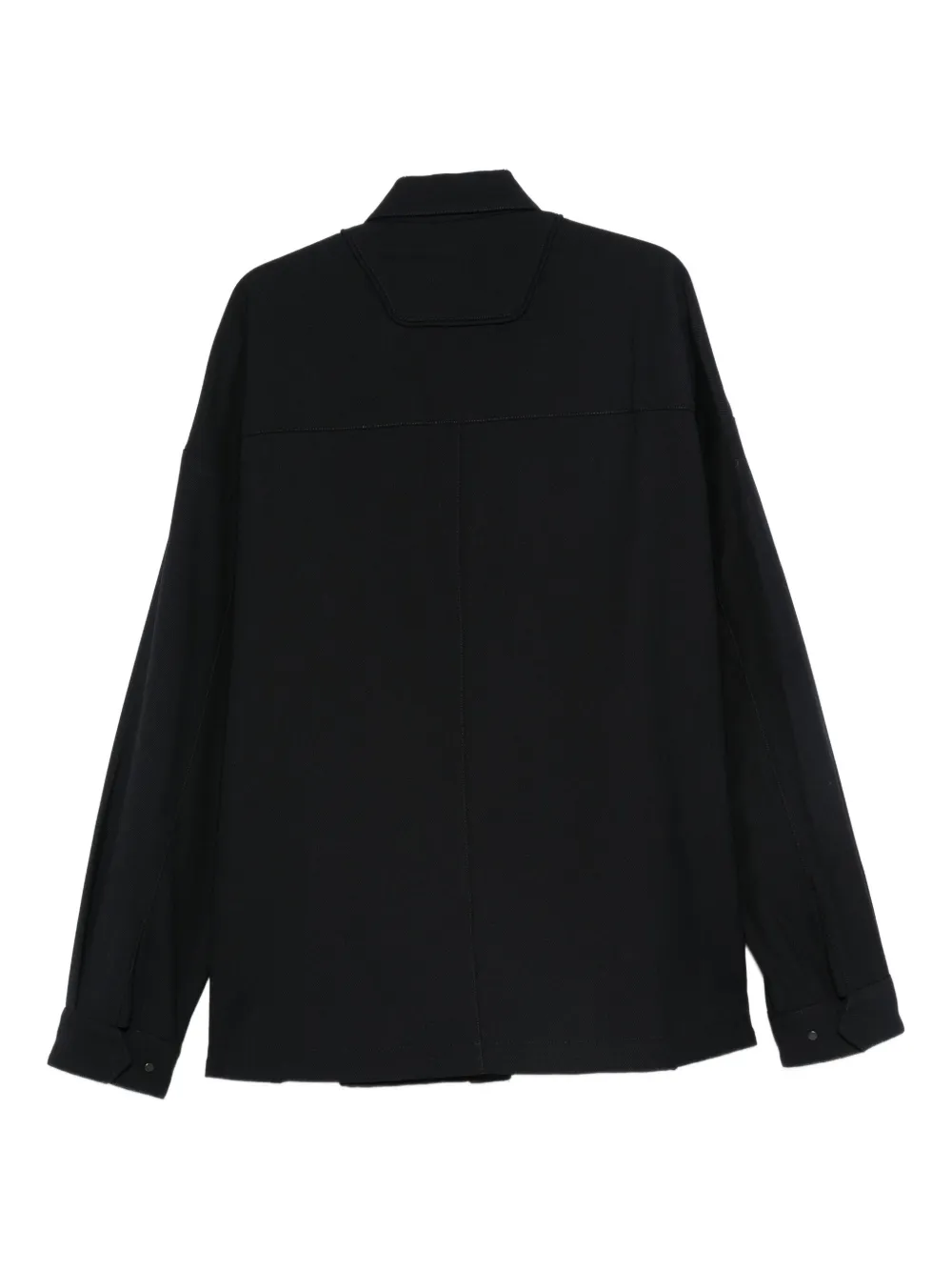 Темно-синий скрытая застежка спереди длинные рукава классический воротник дизайн с панелями