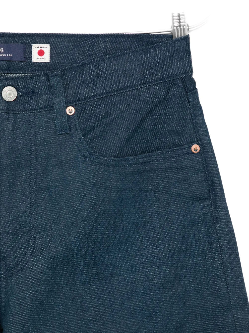 Темно-синий прямой крой пять карманов застежка на пуговицах