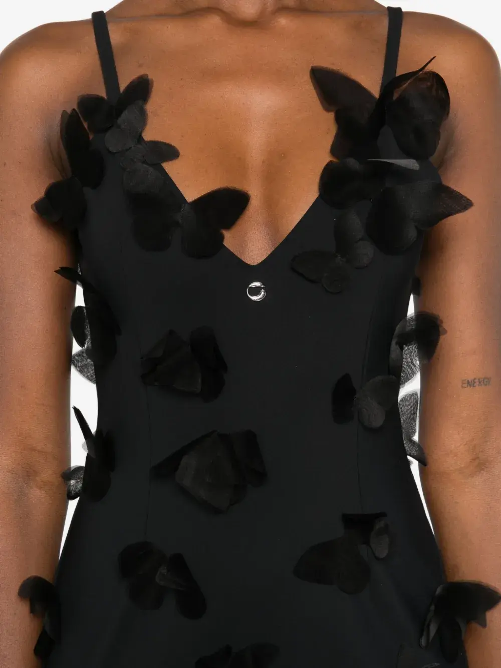 Черный аппликации-декор дизайн с лямками v-образный вырез потайная застежка-молния